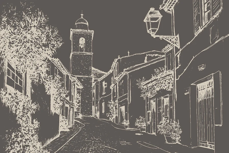 Lépjen be egy bájos utcai jelenetbe ezzel a falfestménnyel, amely a hangulatos falusi élet melegét örökíti meg. A furcsa épületekkel és a harangtoronnyal, amely olyan, mintha egyenesen egy mesekönyvből lépett volna elő, tökéletes az álmodozás és a vándorlás vágyának felkeltésére. Képzelje el, hogy kávét kortyolgatva bámulja ezt a kedves kilátást, mintha a frissen sült kenyér illata szállna a falfestményen túlról. A gyengéd vonalvezetés játékosságot kölcsönöz, és nyugalomra hív. Tökéletes bármelyik szobába, ez a falfestmény karaktert ad, és azokat a kedves kis pillanatokat, amelyek az otthont, nos, otthonná teszik. Igazi beszélgetésindító is – ki ne szeretne képzeletbeli utazásairól beszélgetni?