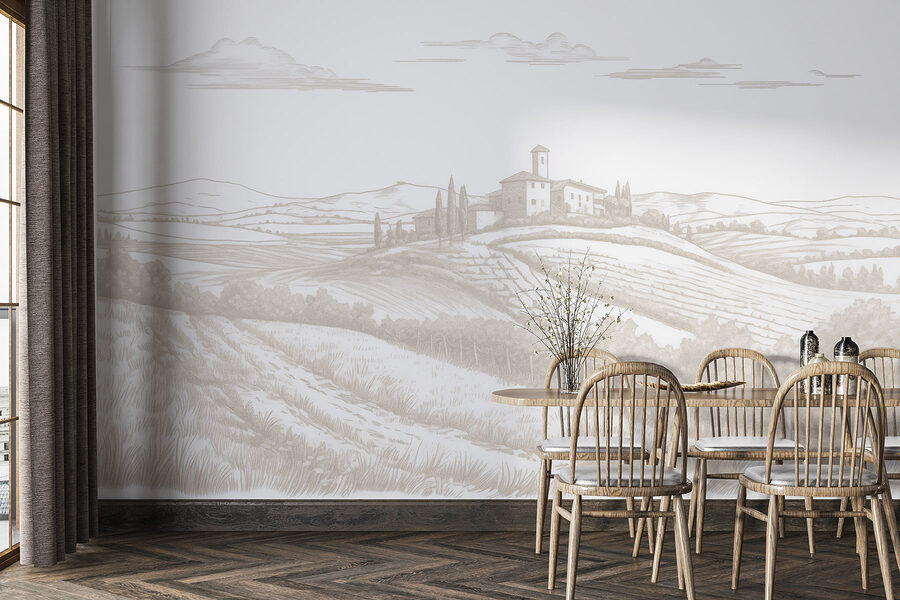 Alakítsa át terét ezzel a magával ragadó falfestménnyel, a “Tájkép házzal és mezőkkel” cíművel. Olyan, mintha a vidék egy szeletét egyenesen az otthonodba hoznád – traktor nélkül. Csak képzelje el: lágy dombok, egy bájos kis ház, és a szélben hullámzó mezők. Nyugodt, hívogató, és még a legforgalmasabb szobákban is nyugalmat és összeszedettséget teremt.
