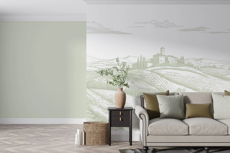 Alakítson át bármilyen szobát békés pihenőhellyé ezzel a gyönyörű falfestménnyel, amely egy nyugodt tájat ábrázol. Képzelje el a lágy dombokat, a tájat ölelő bájos házat, és a mezők meleg ölelésként húzódnak tovább. Ez az álmodozó hétvégi vidéki kirándulást idézi fel – tökéletesen alkalmas arra, hogy a mindennapokat egy kicsit kevésbé, nos, szürke hétköznapoknak érezzük. A lágy árnyalatok olyan nyugalmat árasztanak, amelynek nehéz ellenállni. Olyan, mintha a friss levegőt és a természet nyugalmát egyenesen az otthonába hívná, az allergiát és a rovarcsípéseket leszámítva. Ki ne szeretne egy kis darabka paradicsomot, amit kávé szürcsölgetés közben bámulhat?