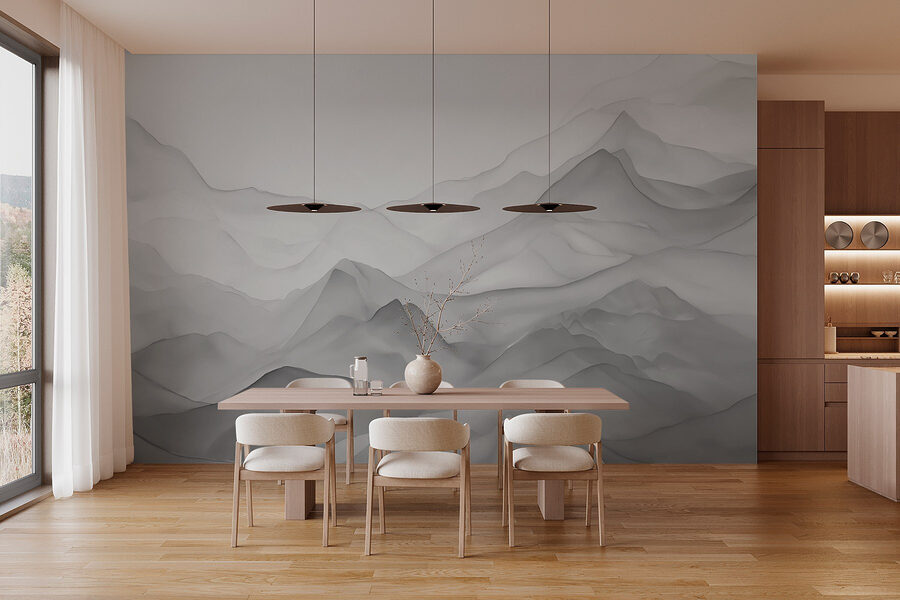Alakítsa át terét ezzel a falfestménnyel, amely eleganciát és kalandot sugároz. Képzelje el, hogy belép egy szobába, és úgy érzi, mintha egy nyugodt hegyvonulatba lépett volna, ahol a szürke és a fehér árnyalatok lágyan keverednek. Tökéletes a nyugodt hangulat megteremtéséhez, legyen szó akár egy tinédzser szentélyről vagy egy hangulatos olvasósarokról. A gyengéd árnyalatok dinamikus, mégis nyugtató érzést keltenek, mintha a távoli hegycsúcsok fölött csendesen szállna a reggeli köd. Képzelje el: az egyik pillanatban a falat bámulja, a következőben pedig távoli helyekről ábrándozik. Egyszerűen kikapcsolódásra invitál, nem igaz? Egy kis szelet természet túrázás nélkül!