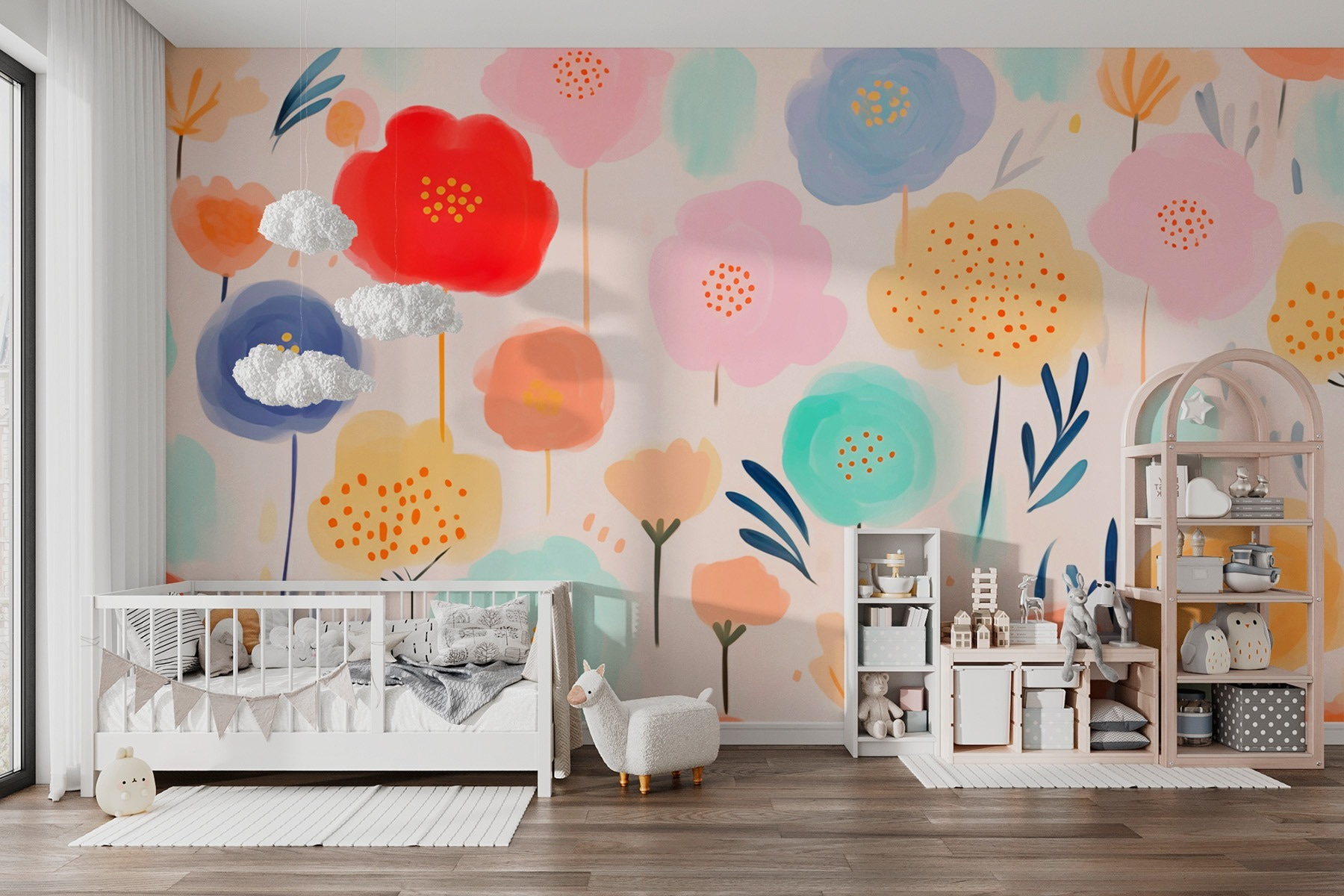 Alakítsd át az unalmas falat virágzó paradicsommá ezzel az élénk falfestménnyel, amely lágy fehér háttéren színes virágokat ábrázol. Képzelje el, hogy minden alkalommal, amikor belép a szobába, egy vibráló kertbe lép, vidám virágokkal körülvéve. Olyan, mintha a tavasz örömét hozná be a házba – öntözés nélkül! Tökéletes a kisgyermekek helyiségébe, vagy akár egy hangulatos olvasósarok játékos hangsúlyaként. Úgy tűnik, minden egyes szirom azt suttogja: “Szórakozzunk egy kicsit!”. Ez a falfestmény szeszélyes dizájnja egy csipetnyi személyiséget kölcsönöz, így bármely helyiség azonnal világosabbnak és hívogatóbbnak tűnik. Ráadásul könnyedén beindítja a képzeletet és a kreativitást. Ki ne szeretne álmodozni ezek között a bájos virágok között?