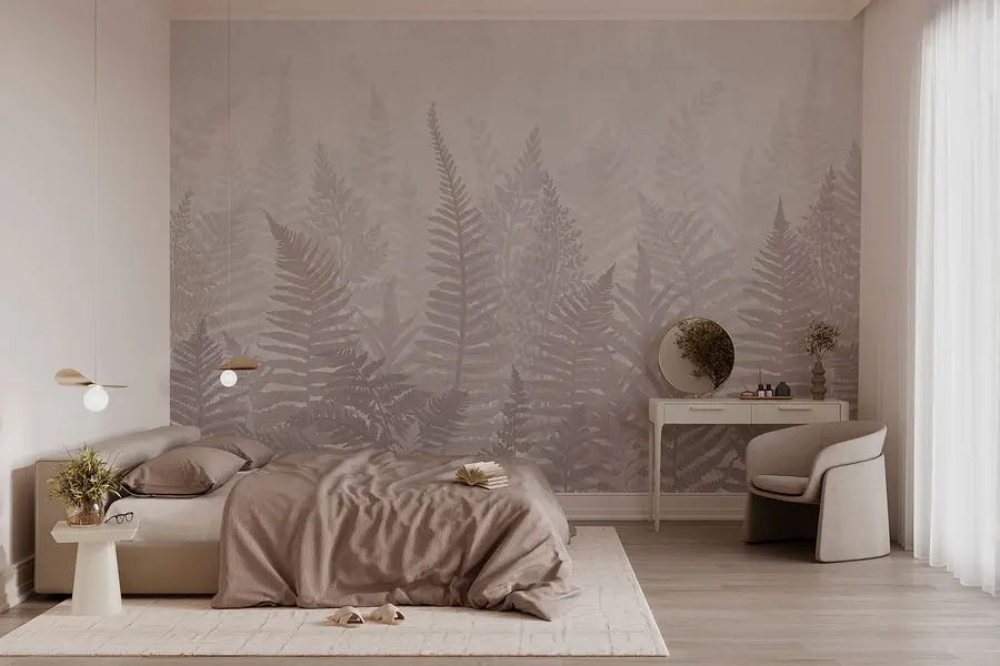 Bármelyik szobát varázsolja nyugodt meneküléssé ezzel a varázslatos falfestménnyel, amelyen álmodozó ködbe burkolózó páfránylevelek láthatók. Olyan, mintha a természet egy szeletét hozná be a házba, az alkalmi pókok és bosszantó bogarak nélkül. Képzelje el, ahogy a lágy zöldek finoman keverednek a szelíd szürkékkel – ez megnyugtató, frissítő és egy kicsit varázslatos. Ez a dizájn békés hangulatot áraszt, és tökéletesen illik hangulatos sarkokba vagy élénk életterekbe. Mintha azt súgná a külvilágnak, hogy nyugodtan lassítson le és lélegezzen. A természet szerelmesei otthonosan fogják érezni magukat, a természet esszenciájába burkolózva.