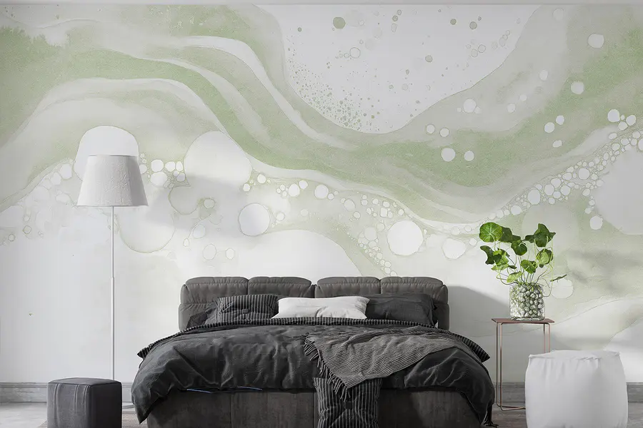 Alakítsa át terét ezzel a lenyűgöző akvarell falfestménnyel, melyben nyugtató zöldek és csendes fehérek keverednek. Képzelje el, hogy egy olyan szobába lép be, ahol a falak a pihenésről suttognak, a színek szelíd áramlásában sütkérezve. Olyan, mint egy lélegzetvételnyi friss levegő – tökéletes egy hangulatos nappaliba vagy egy békés olvasósarokba. A vendégek kétségtelenül megállnak, talán még be is hajolnak, hogy megcsodálják a lágy íveket és a játékos pöttyöket. Ez nem csak egy falfestmény; beszélgetésekre és álmodozásra késztet. Adjon a falaknak egy kis szeretetet ezzel a megnyugtató műalkotással, amely olyan, mint egy művészi menekülés.