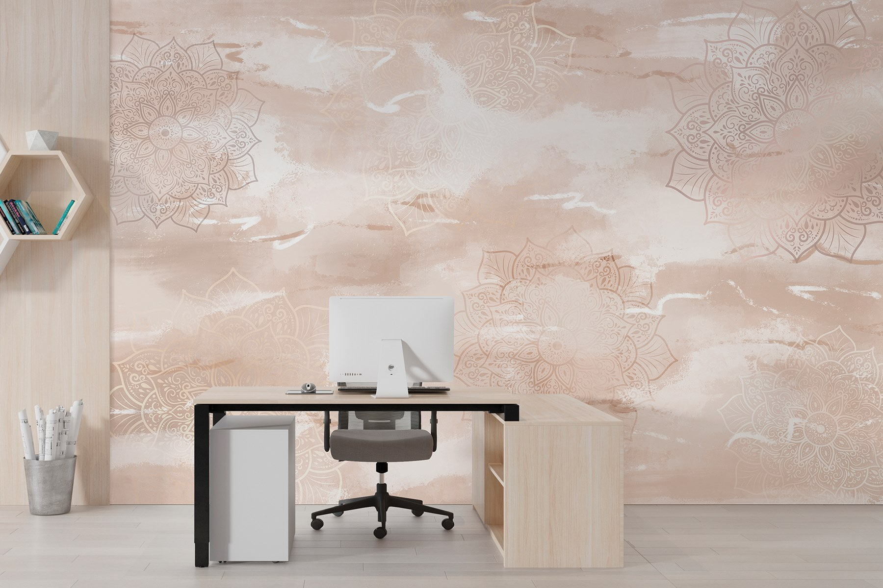 Alakítson át bármilyen helyiséget ezzel a varázslatos falfestménnyel, ahol finom virágminták táncolnak a nyugtató háttéren. Képzelje el, hogy minden nap erre a szelíd szépségre ébred – olyan, mint egy friss levegővétel a lakótérben. A lágy színek nyugalmat árasztanak, így tökéletes hangulatos estékhez vagy élénk összejövetelekhez. Képzelje el, ahogy a barátok a bonyolult mintákat csodálják, miközben teát vagy kávét kortyolgatnak, és kellemes beszélgetéseket kezdeményeznek. Különleges hangulatot kölcsönöz anélkül, hogy túlzásba esne. Vigyen be egy kis kerti bájt a házba, és nézze meg, hogyan dobja fel a hangulatot. Tökéletes az álmodozó szívűeknek!