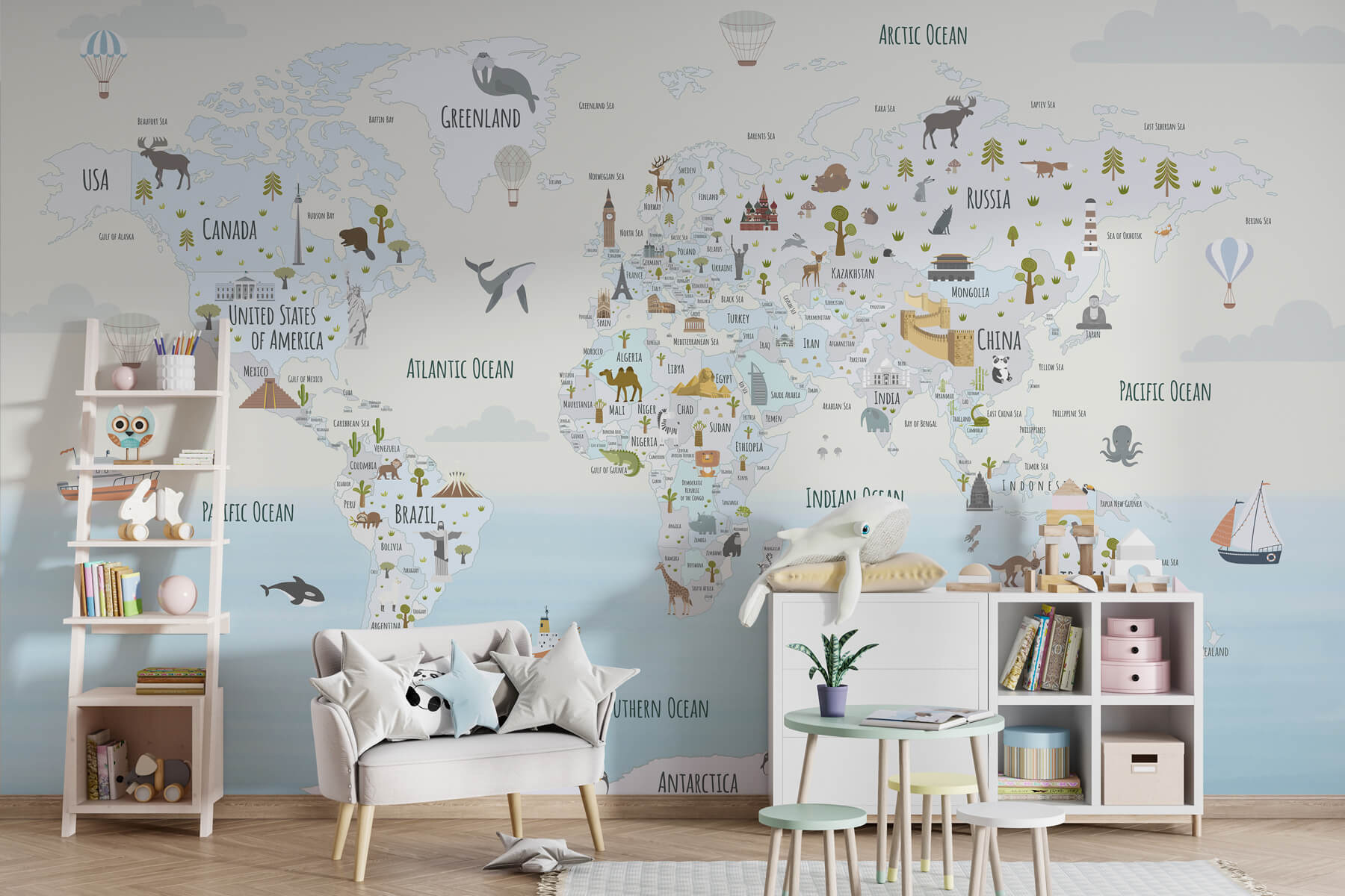Alakítson át bármilyen teret ezzel a bájos falfestménnyel, amely egy színes világtérképet ábrázol, bájos állatokkal megszórva. Tökéletes a kíváncsi gyerekek vagy bárki más fiatal szívűek számára, mert fantáziát és kalandot ébreszt. Képzeld el, ahogy a kicsik kedvenc teremtményeiket mutogatják, miközben távoli tájakról álmodoznak – tiszta varázslat! A lágy árnyalatok pihentető hangulatot teremtenek, ideális hálószobákba vagy játszószobákba. Olyan, mint egy nyílt meghívás a felfedezésre, tanulásra és vad utazásokról való álmodozásra. Egy lenyűgöző asztaldísz, amely valóban életre kelti a falakat, és minden pillantás egy kis utazást tesz lehetővé!