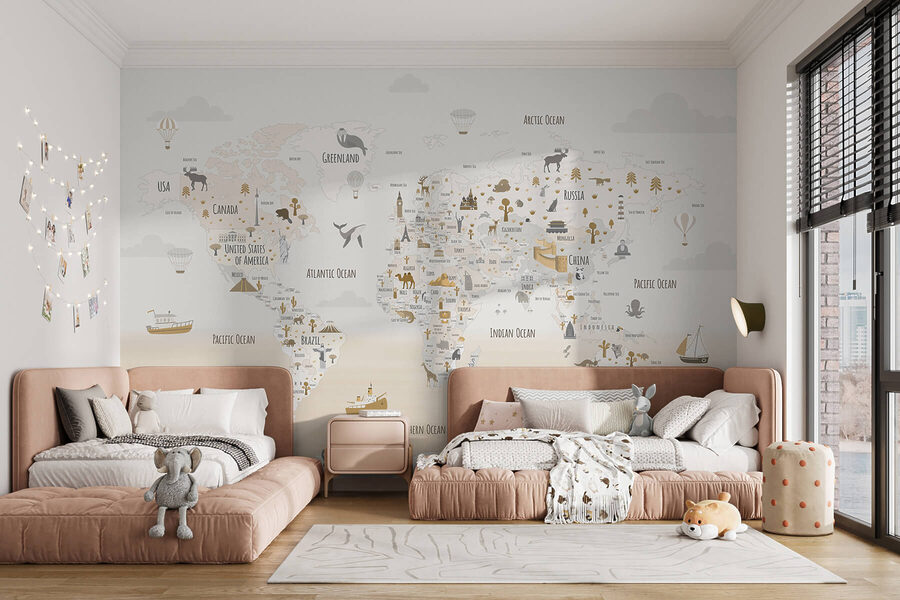 Bármilyen teret alakítson át egy kis kalandos zónává a fali falfestményekkel A világ térképe. Képzeld el, ahogy a gyerekek keresztbe tett lábbal, csillogó szemekkel ülnek, és ujjaikkal végigsimítják a kontinenseket és óceánokat. Ez a falfestmény nem csupán művészet; ez egy felhívás a felfedezésre és a tanulásra. Az állatok és ikonikus nevezetességek játékos illusztrációival kíváncsiságot ébreszt és beindítja a képzeletet. Akár a gyerekszobában, akár a dolgozószoba sarkában, olyan szeszélyes hangulatot kölcsönöz, amely minden pillantást egy mini kirándulásnak érezhet. Ki tudja? Talán inspirál néhány jövőbeli világutazót! Dobd fel a falakat, és kezdődhet a vándorlás!