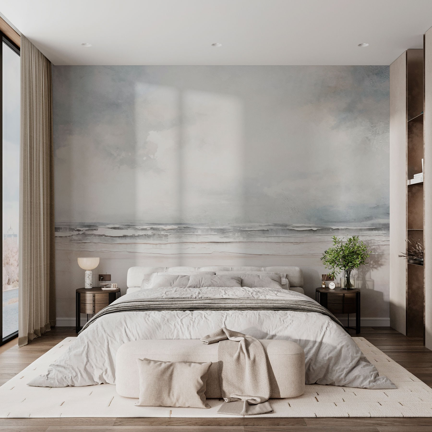 Bármilyen helyiséget alakítson át tengerparti pihenőhellyé ezzel a nyugodt falfestménnyel, amelyen a hullámok lágyan csapkodnak a parton. Képzelje el nappaliját, a falakat, amelyek egy nyugodt tengerparti nap lágy árnyalataitól csillognak. Olyan, mintha otthon nyaralna – egyetlen bőrönd bepakolása nélkül. A felhők lustán sodródnak a fejünk felett, felidézve a nyári meleg boldogító érzését. A barátokat vonzani fogja a nyugtató hangulat, így minden összejövetel olyan lesz, mint egy tengerparti szökés. Tökéletes irodákba vagy pihenőhelyekre, ez a falfestmény elfeledteti a mindennapok nyüzsgését, ha csak egy pillanatra is. Fogjon egy csésze kávét, dőljön hátra, és hagyja, hogy a hullámok átjárják – naptejre nincs szükség!