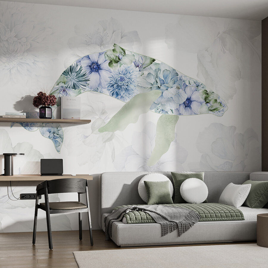 Alakítsa át terét ezzel a varázslatos falfestménnyel, amelyen egy játékos virágokkal teli bálna látható. Képzelje el, hogy belép egy szobába, és azonnal érzi a tenger nyugalmát és a kert szeszélyét. A gyengéd árnyalatok és a finom szirmok lágy, nyugodt hangulatot árasztanak, tökéletes egy hangulatos olvasósarokba vagy akár egy játékos gyerekszobába. Olyan, mintha a természet egy darabja lenne közvetlenül a falon, amely megörökíti az óceáni élet és a virágos szépség örömét. Képzeld el, ahogy a barátaid csodálják, és megkérdezik, hol találtál egy ilyen gyöngyszemet. Merüljön el, és hagyja, hogy a falfestmény életet leheljen a falába!