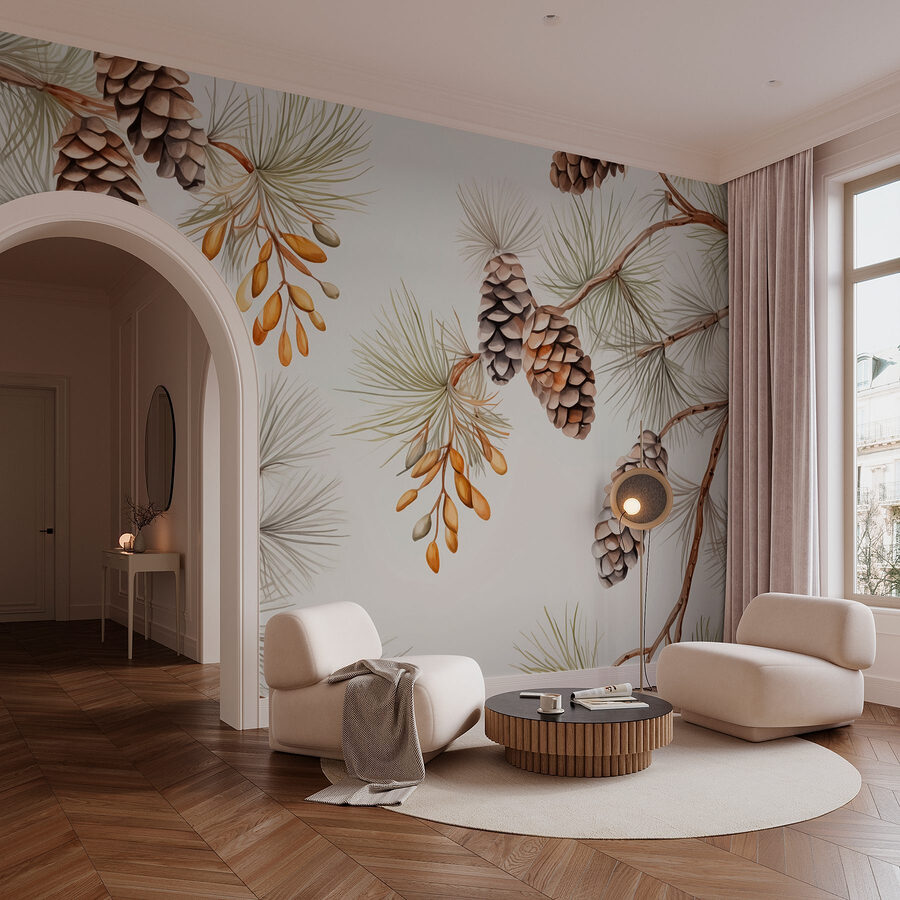 Változtasson bármelyik szobát erdei menedékké ezzel a bájos falfestménnyel, amely fenyőtobozok és tűlevelek bájos táncát mutatja be. Képzelje el, ahogyan egy csésze kávé mellett üldögél, miközben a friss fenyő illata száll a levegőben, és ez a falfestmény nyugodt hátteret teremt. Olyan, mintha a természetet egyenesen az otthonába hozná – túrabakancs nélkül! Ezek a természetes tónusok csodákat művelnek, meleggé és hívogatóvá teszik a tereket. Legyen szó akár nappaliról vagy egy hangulatos zugról, ez a falfestmény egy csipetnyi rusztikus szépséget ad, amely biztosan örömet okoz, és talán még egy-két szabadtéri kalandot is.