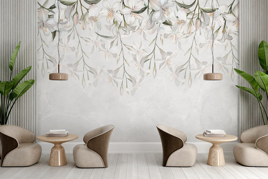 Dobja fel terét ezzel a lenyűgöző falfestménnyel, amelyen finom fehér virágok táncolnak a lágy, fehér háttéren. Olyan, mintha egy szelíd kertet hozna egyenesen a szobába, a bosszantó méhek nélkül! Képzelje el, hogy egy jó könyvvel kucorog, kedvenc teáját kortyolgatja, és úgy érzi, mintha egy nyugodt oázisba lépett volna. Ezeknek a virágoknak a finom eleganciája megnyugtatja az elmét – tökéletes egy hangulatos olvasósarokba vagy egy békés hálószobába. Gondoljon csak a vendégek bókjaira. Friss, légies és boldogítóan szép, ez a falfestmény egy lélegzetvételnyi friss levegő bármelyik falra.