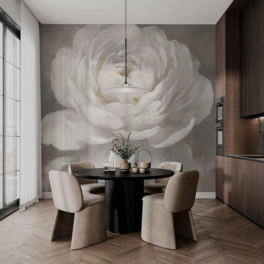 Lépjen be a nyugodt hangulatba ezzel az álmodozó fehér virágot ábrázoló falfestménnyel, amelyet lágy, leveles akcentusokkal szakszerűen párosítanak. Képzelje el, hogy egy olyan térbe lép be, amely olyan, mint egy tavaszi reggelen a lágy szellő. A nyugodt tónusok hívogató légkört teremtenek, amely tökéletes a hosszú nap utáni kikapcsolódáshoz. Szinte olyan, mintha a virág a nyugalom és a megújulás titkait suttogná. Akár egy hangulatos olvasósarokban, akár egy szellős folyosón helyezzük el, ez a falfestmény a hétköznapokat valami különlegessé varázsolja. Ez az a fajta dekoráció, amely még egy kis álmodozásra is inspirálhat – kinek ne jönne jól egy kis álmodozás? Merüljön el egy olyan világban, ahol a természet és a művészet együtt táncol, és a falakat dalra fakasztja.