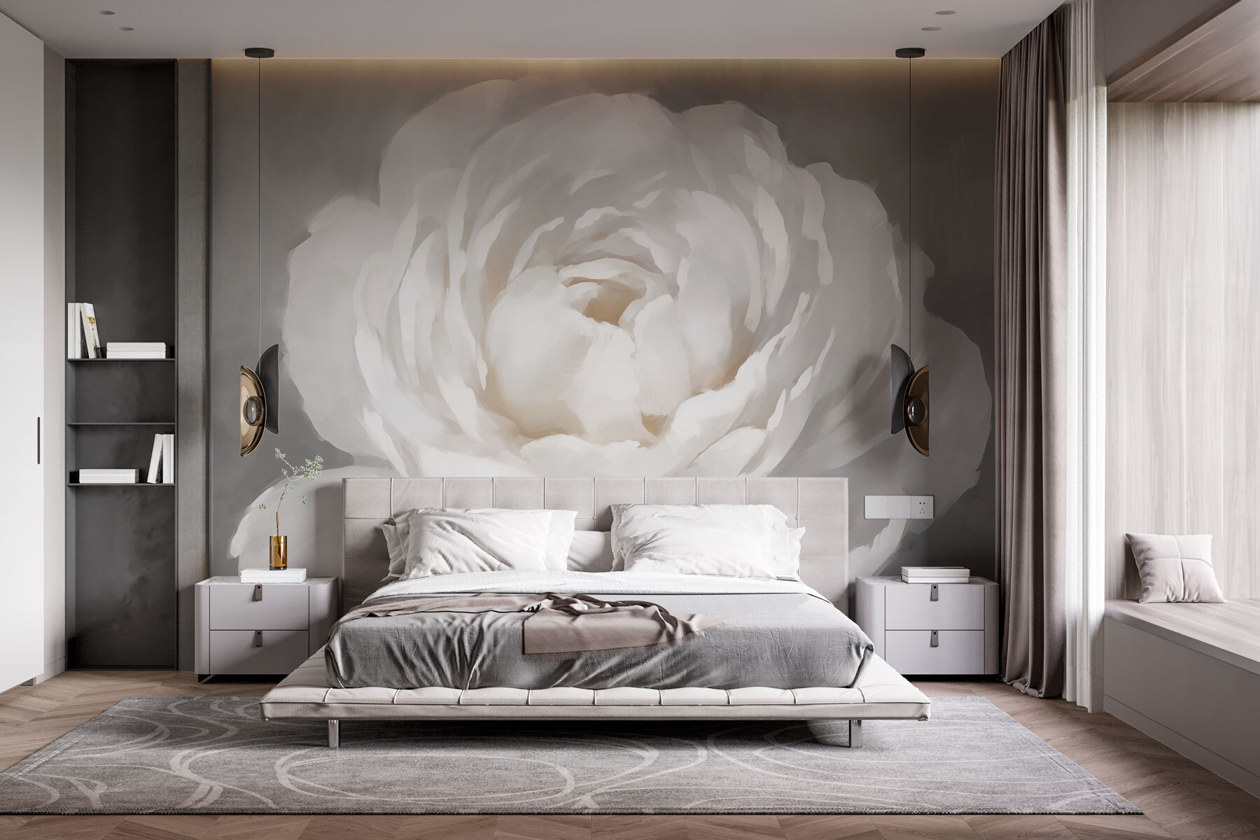 Lépjen be a nyugodt hangulatba ezzel az álmodozó fehér virágot ábrázoló falfestménnyel, amelyet lágy, leveles akcentusokkal szakszerűen párosítanak. Képzelje el, hogy egy olyan térbe lép be, amely olyan, mint egy tavaszi reggelen a lágy szellő. A nyugodt tónusok hívogató légkört teremtenek, amely tökéletes a hosszú nap utáni kikapcsolódáshoz. Szinte olyan, mintha a virág a nyugalom és a megújulás titkait suttogná. Akár egy hangulatos olvasósarokban, akár egy szellős folyosón helyezzük el, ez a falfestmény a hétköznapokat valami különlegessé varázsolja. Ez az a fajta dekoráció, amely még egy kis álmodozásra is inspirálhat – kinek ne jönne jól egy kis álmodozás? Merüljön el egy olyan világban, ahol a természet és a művészet együtt táncol, és a falakat dalra fakasztja.