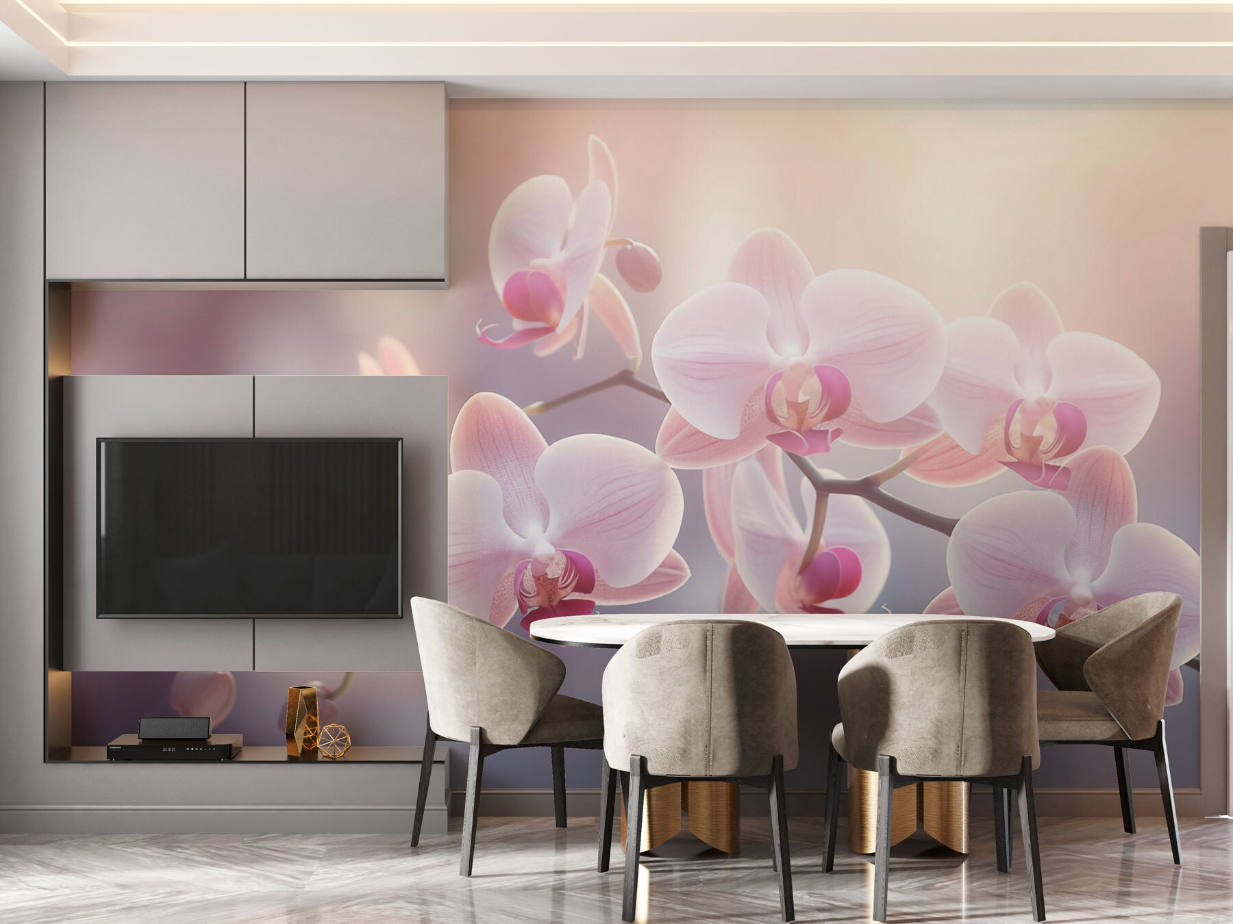 Alakítsa át terét a “Delicate Blooms in Soft Light” (Finom virágzás lágy fényben) falfestménnyel, amely a virágos szépség bájos kitörése, és a vendégek a falakat fogják csodálni, nem csak a falatkákat. Képzelje el, hogy egy olyan szobába lép, amely olyan, mint egy tavaszi, nyugodt kert, ahol a virágzó orchideák lágy árnyalatai nyugodt légkört teremtenek. Képzelje el a lusta délutánokat a szelíd fényben elmerülve, egy csésze teával a kezében, miközben ezek a kedves virágok édes semmiségeket suttognak. Olyan, mintha egy meghitt barátod lenne a faladon, aki emlékeztet arra, hogy az élet apró pillanatai megérdemlik, hogy megünnepeljük őket. Ez a falfestmény tökéletesen feldob bármilyen zugot vagy zugot, ez a falfestmény egy kellemes érintés mindenkinek, aki egy kis virágos finomságra vágyik az életében. Szóval, rajta, hozd haza ezt a virágos ölelést!