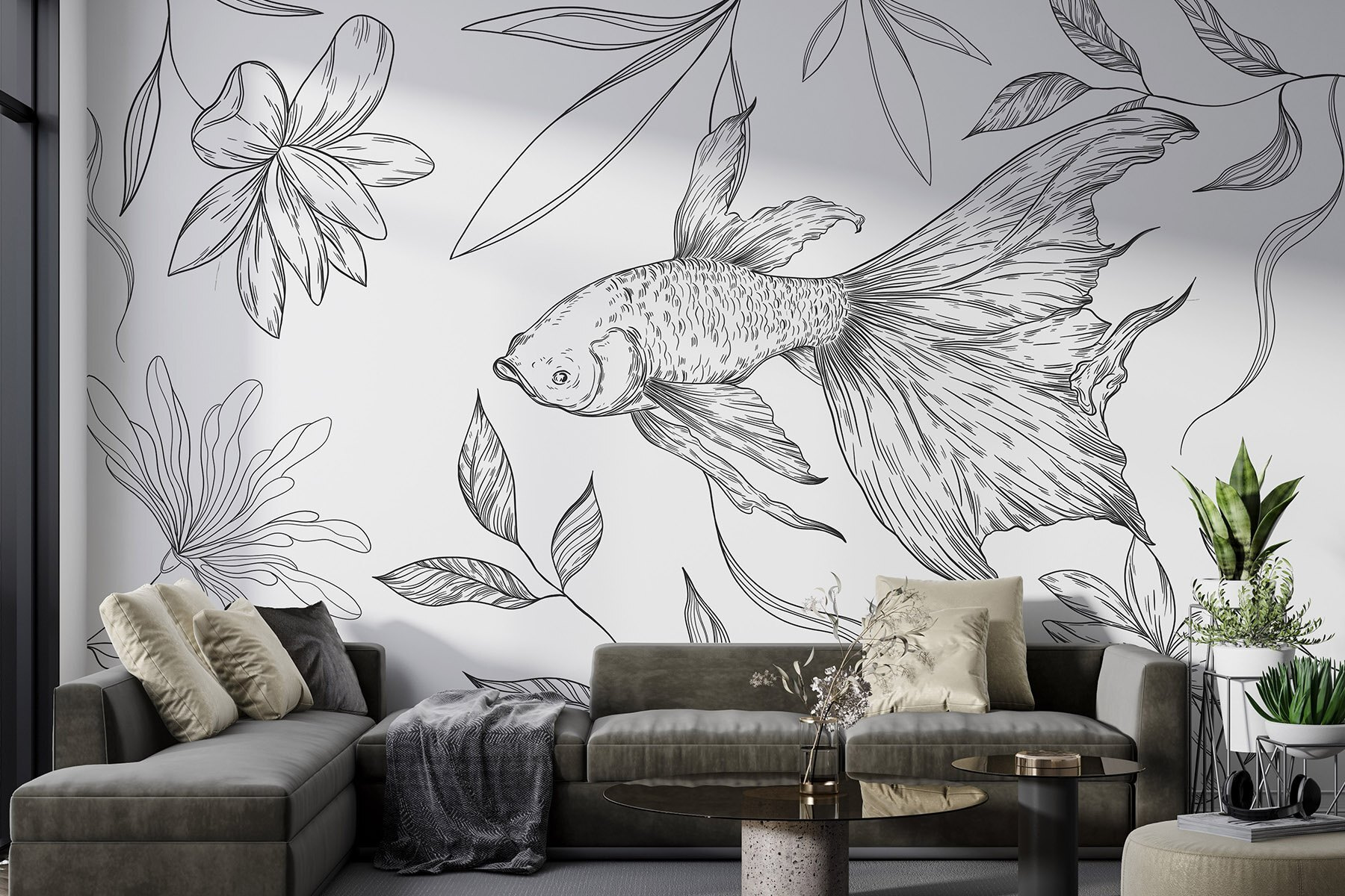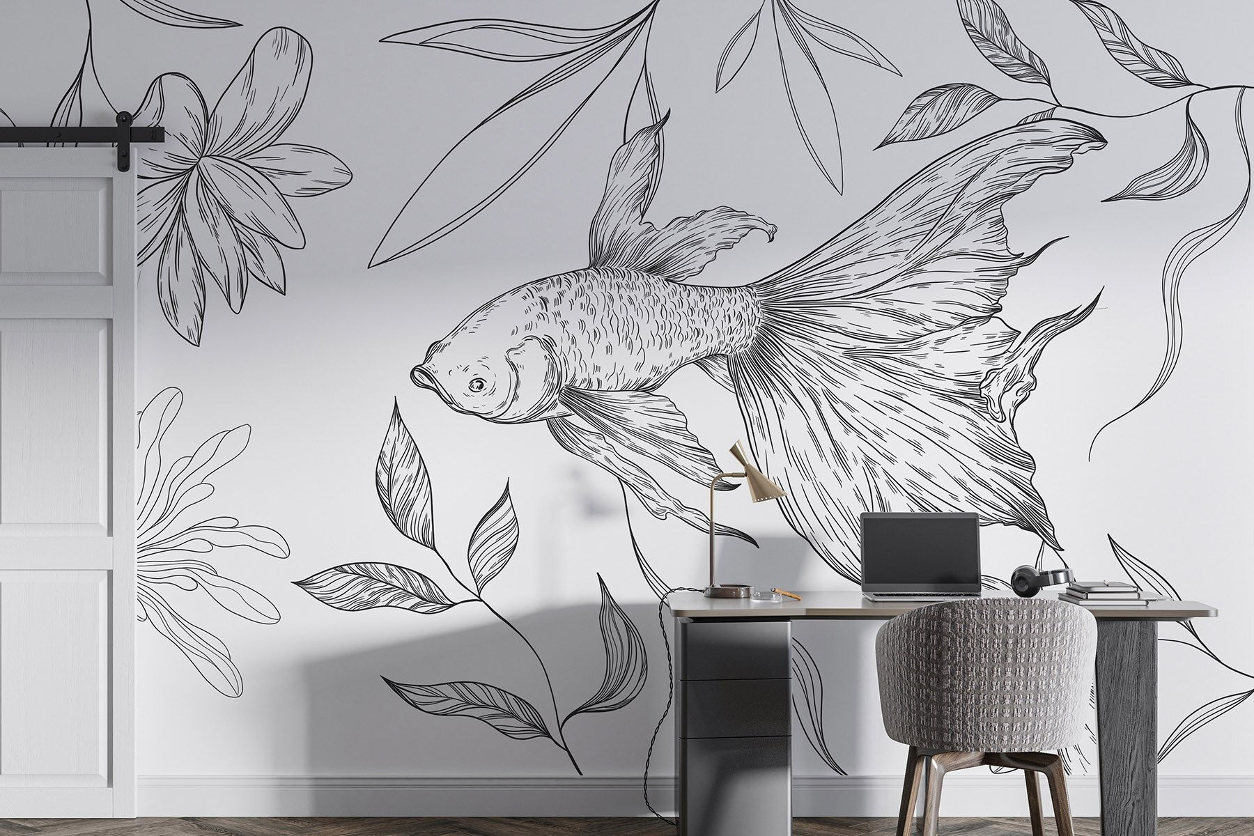 Alakítson át bármilyen teret ezzel az elbűvölő falfestménnyel, amelyen egy bájos hal siklik a finom növények között. A fekete-fehér dizájn egyedi hangulatot kölcsönöz, és eleganciát kölcsönöz a helyiség túlterhelése nélkül. Képzelje el, ahogy kávét szürcsölgetve a falon táncoló szelíd vonalak nyugtató gondolatokat és kreatív ötleteket ébresztenek. Olyan, mint a természet suttogása, amely békét hív a nyüzsgésedbe. Tökéletes mindenkinek, aki egy kis művészi varázslatot szeretne a falára szórni, ráadásul beszélgetésindító is. Ki ne szeretne a falán lévő “úszópajtásról” beszélgetni?