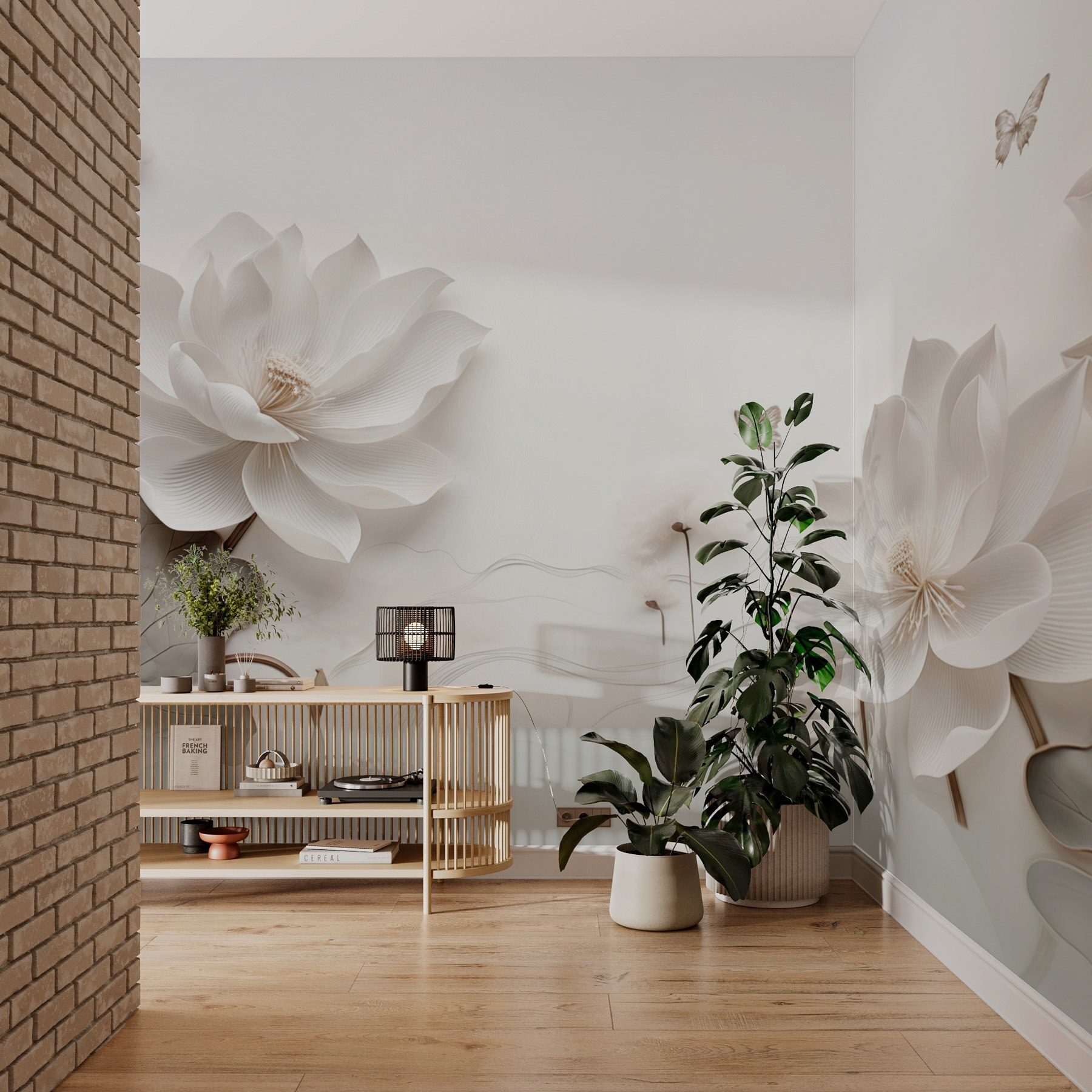 Alakítson át bármilyen teret ezzel az álomszép falfestménnyel, amelyen finom fehér papírvirágok és rebbenő pillangók láthatók. Képzelje el, hogy besétál egy szobába, és úgy érzi, mintha egy nyugodt kertbe lépett volna – öntözés nélkül! A lágy, minimalista dizájn egy csipetnyi természetet hoz a belső térbe, így egész évben tavaszias érzést nyújt. Tökéletes hátteret biztosít a lusta délutánokhoz vagy a vidám összejövetelekhez. Képzelje el, ahogy a barátok lazulnak vagy a gyerekek játszanak, miközben nyugtató, elegáns hangulat veszi őket körül. Ez a falfestmény nem csupán dekoráció; ez egy élmény, amely arra vár, hogy feldobja a falait.