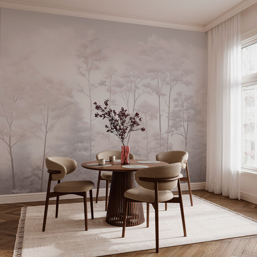 Alakítsa át terét ennek a falfestménynek a nyugodt bájával, amely egy szelíd ködbe burkolózó facsoportot ábrázol. Képzelje el, hogy minden alkalommal egy álomszerű erdőbe lép, amikor arra jár. A lágy tónusok és a ködös légkör nyugtató hangulatot teremt – tökéletes egy hosszú nap utáni kikapcsolódáshoz, vagy egy kis természetességgel gazdagítja otthonát. Olyan, mintha egy békés menekülés lenne a faladon. Ráadásul remek beszélgetésindító! A barátok áradozni fognak az egyedi dekorációs választásodról. Ki gondolta volna, hogy egy csomó fa ennyire magával ragadó lehet?