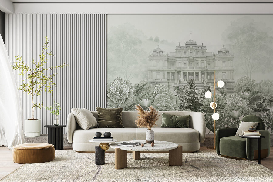 Alakítson át bármilyen teret ezzel a lenyűgöző falfestménnyel, amely egy nagy fehér épületet és vibráló virágokat ábrázol. Képzelje el, hogy belép egy szobába, és egy gyönyörű bazsarózsa-robbanás fogadja, miközben a fenséges háttér csendesen parancsolja a figyelmet. Olyan, mintha egy darab nyugodt kerti varázslatot hoznál be a belső térbe. Tökéletes azok számára, akik szeretik a természet bájával kevert eleganciát, ez a falfestmény nyugtató hangot adhat, vagy örömteli beszélgetéseket indíthat el. Képzelje el, ahogy a barátok teázás közben megcsodálják a részleteket, vagy ahogy egy hangulatos moziestet egy kicsit különlegesebbnek éreznek. Tökéletes befejezése bármely stílusosan virágzó otthonnak.