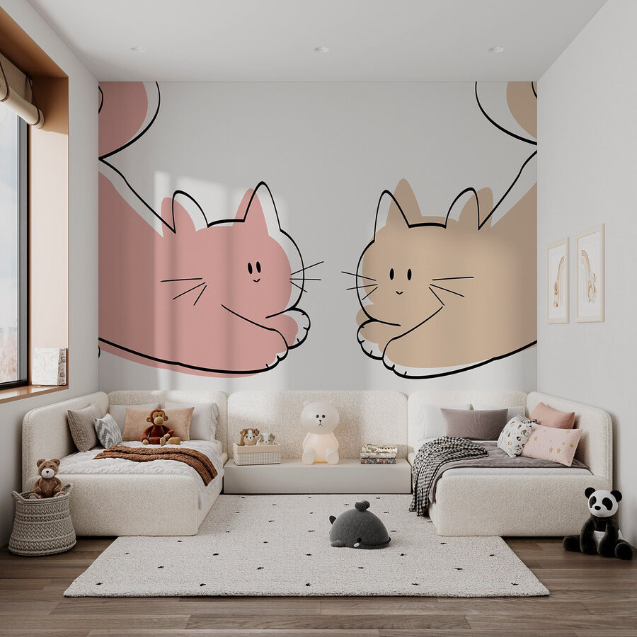 Alakítsa át terét ezzel a bájos falfestménnyel, amelyen egy pár hangulatos macska látható, akik csak lazítanak. Ők azok a fajta cimborák, akikről azt kívánod, bárcsak veled lustálkodhatnának egy lusta vasárnap délutánon. Képzeld el ezt egy gyerekszobában vagy egy játékos otthoni zugban – garantáltan azonnal mosolyogni fogsz! A lágy színek és a szeszélyes dizájn a melegség és a kényelem érzését keltik, így nehéz nem vetni rá néhány pillantást. Tökéletes egy kis báj hozzáadására anélkül, hogy túltengne a hangulat. Ki ne örülne, ha naponta emlékeztetne ezekre az imádnivaló szőrgombócokra? Képzelje csak el, milyen történetek elevenedhetnek meg ezekkel a szeszélyes cicákkal!