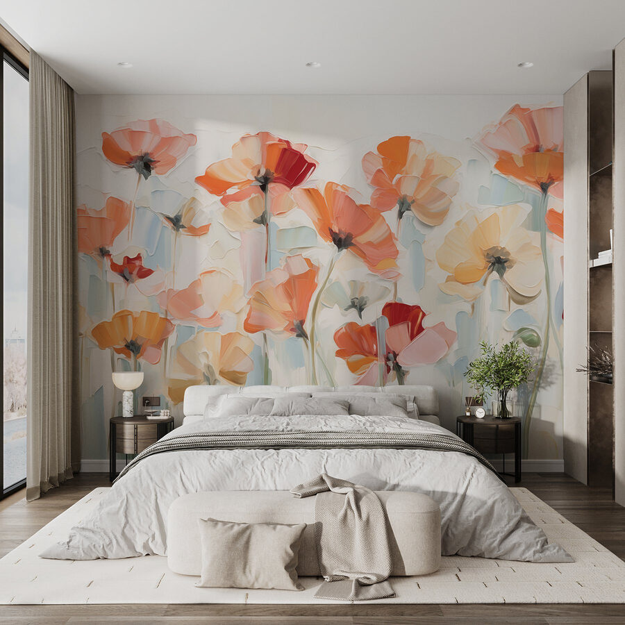 Dobja fel bármelyik helyiséget ezzel a kedves falfestménnyel, amely ropogós fehér háttéren táncoló virágokat ábrázol. Tökéletes mindenkinek, aki szereti a színpompát, ez a falfestmény azonnal meleg, vidám hangulatot kölcsönöz. Képzelje el, ahogy a reggeli kávét kortyolgatja, körülvéve ezekkel a virágokkal – olyan, mintha egy kertet hozna be a lakásba. Az akvarell hatás lágyítja a teret, könnyeddé és légiesebbé téve azt. Remek beszélgetésindító is – figyelje, ahogy a vendégek rácsodálkoznak a szépségére. Akár egy hangulatos zugban, akár egy tágas előszobában, ennek a falfestménynek a varázsa biztosan elragadó lesz!