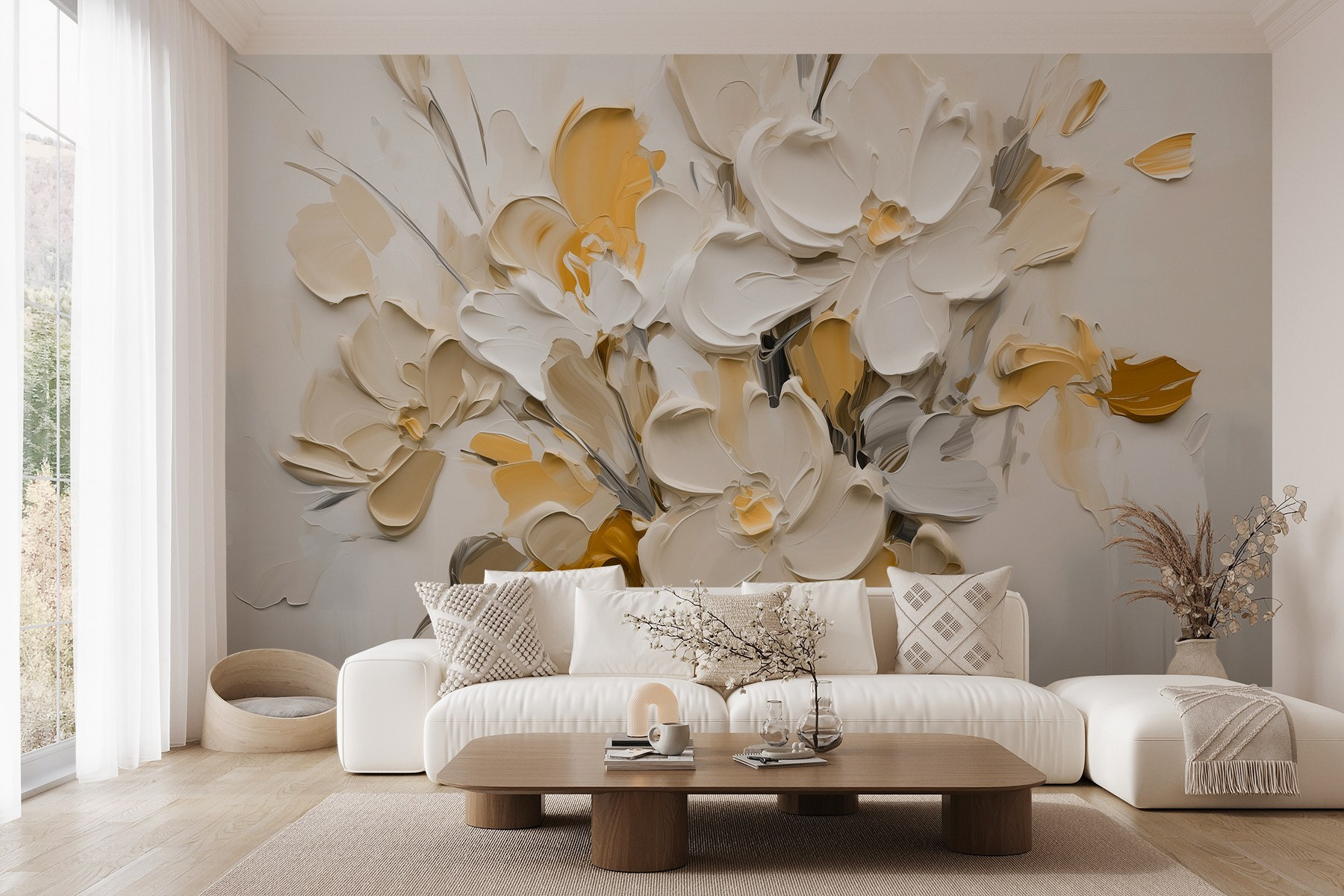 Alakítsa át terét ezzel a bájos, vázában lévő virágokat ábrázoló falfestménnyel. Olyan, mintha egy kertet hoznál be a házba anélkül, hogy az öntözéssel kellene törődnöd! A krém és a sárga lágy árnyalatai melegséget kölcsönöznek, így minden alkalommal, amikor arra jársz, olyan érzésed lesz, mint egy meghitt ölelés. Képzelje el, ahogy a reggeli kávéját kortyolgatja, miközben ezek a virágok vidáman figyelnek – egy kis napi adag nyugalom. Tökéletes arra az unalmas falra, amelynek szüksége van egy kis szeretetre, vagy egy vidám háttér az összejövetelekhez. Ez nem csak dekoráció; hangulatjavító, mindennapi emlékeztető arra, hogy a természet szépsége bármilyen helyiséget feldobhat.