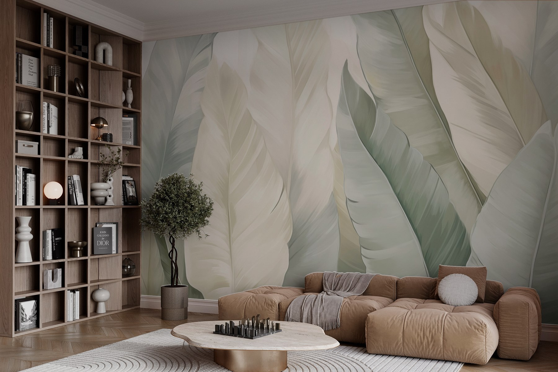A trópusi levelek lágy árnyalatait ábrázoló falfestmény segítségével egy unalmas falat buja meneküléssé varázsolhatsz. Képzelje el, hogy kedvenc oázisába lép, valahányszor belép a szobába. A gyengéd zöldek és krémek pihentető hangulatot teremtenek – tökéletes azokhoz a hosszú munkanapokhoz, amikor csak egy kis természeti érintésre van szükséged. Olyan, mintha egy kis dzsungelt hozna be a lakásba anélkül, hogy a növények öntözésével vagy a bosszantó rovarokkal kellene törődnie. Lehet, hogy a barátaid elkezdenek kérdezősködni a nyugodt otthonod titkáról! Minden egyes pillantással számíthat arra, hogy nyugalom árasztja el, és a lusta nyári napokra és hűvös szellőkre emlékezteti Önt. Ez nem csak egy falfestmény; ez egy hangulat!