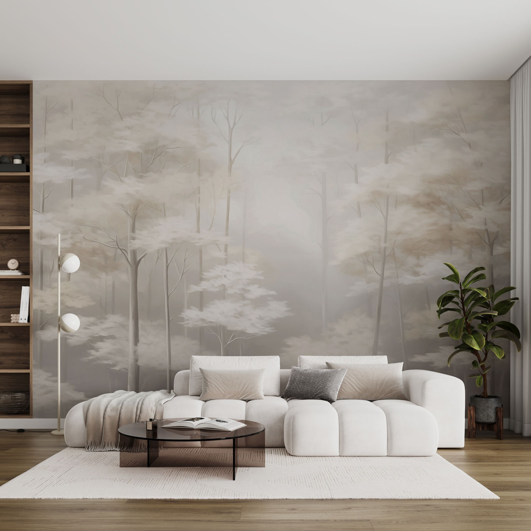 Képzelje el, hogy egy álomszerű, ködös erdőbe lép, ahol lágy tónusok és szelíd fák hívogatják a barangolásra. Ez a falfestmény olyan, mint egy friss levegővétel az Ön terében – a természet nyugalmának és a modern művészetnek a tökéletes keveréke. Képzelje el a hangulatos estéket egy olyan szobában, amelyet ez a nyugodt háttér alakít át. Ez nem csak egy falfestmény; ez egy hangulat. Akár kávézik, akár a legújabb projektjén dolgozik, ez a nyugtató jelenet nyugalmat és inspirációt ígér. Ráadásul remek beszélgetésindító minden vendégének. Ki ne szeretne otthonról, kényelmesen, a természet szépségéről beszélgetni?