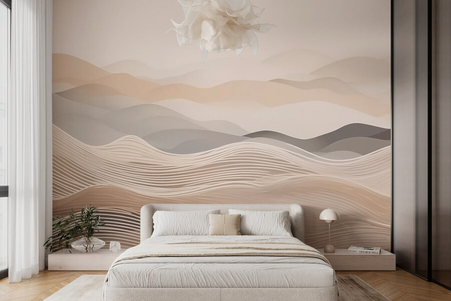 Bármelyik falat hangulatos meneküléssé varázsolhatod ezzel a falfestménnyel, amely lágy fehér és barna hullámokban ábrázolja a szelíd hegyeket. Olyan, mintha a természet egy szeletét hozná be otthona szívébe. Képzelje el, hogy egy jó könyvvel kucorog, vagy csak kávét szürcsölgetve bámulja ezeket a megnyugtató íveket. Szinte úgy tűnik, hogy úgy hullámzanak, mint egy nyugodt tenger – tökéletesen alkalmasak a békés hangulat megteremtésére. Ennek a falfestménynek a finom tónusai gyönyörűen illeszkednek bármilyen dekorációhoz, így fantasztikus hátteret biztosítanak a belsőépítészeti kalandozásokhoz. Minden a kényelem és a stílus közötti egyensúly megtalálásáról szól, nem gondolja? Vigyen egy kis nyugalmat a terébe; elvégre ki ne szeretné, ha az otthona olyan lenne, mint egy meleg ölelés?