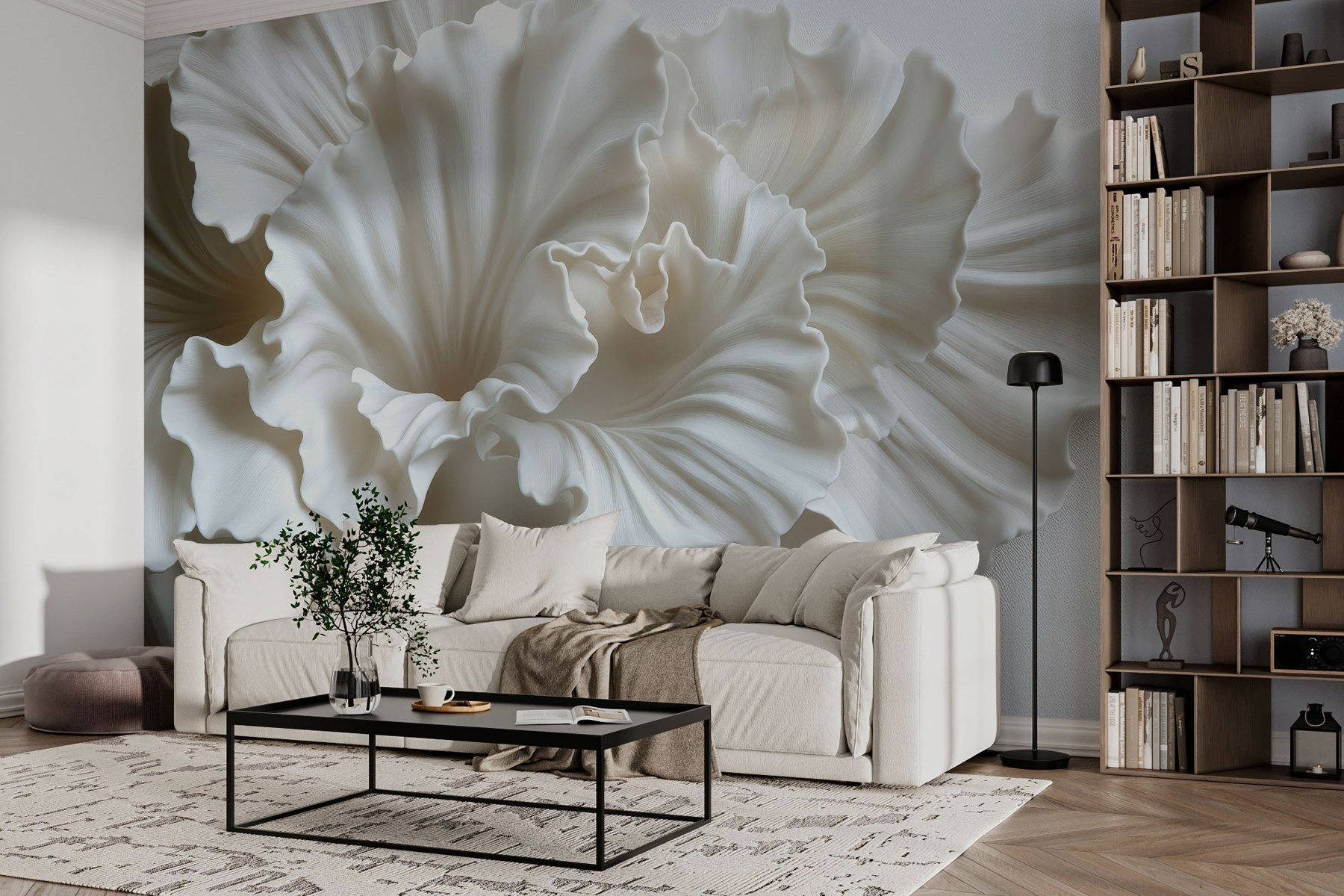 Alakítson át bármilyen helyiséget ezzel a lenyűgöző falfestménnyel, amely finom fehér virágos textúrákat ábrázol, amelyek úgy tűnik, mintha táncolnának egymással. Képzelje el, hogy egy olyan térbe lép, ahol a fény gyönyörűen játszik a lágy szirmokon, és még a hétfői napokat is egy kicsit vidámabbá teszi. Olyan, mintha friss virágokkal tüsszögés nélkül venné körül magát egy lágy szellő. Tökéletes egy hangulatos olvasósarokba vagy egy elegáns étkezőbe, ez a falfestmény olyan nyugodt bájt kölcsönöz, amely melegséget és nyugalmat hívogat. A barátok talán megállnak, vetnek egy pillantást, és megkérdezik, hogyan került oda ez a békés hangulat. Csak mosolyogj és élvezd a bókokat! Akár ihletettnek, akár egyszerűen csak nyugodtnak érzi magát, ez a falfestmény tökéletes hangulatot teremt.
