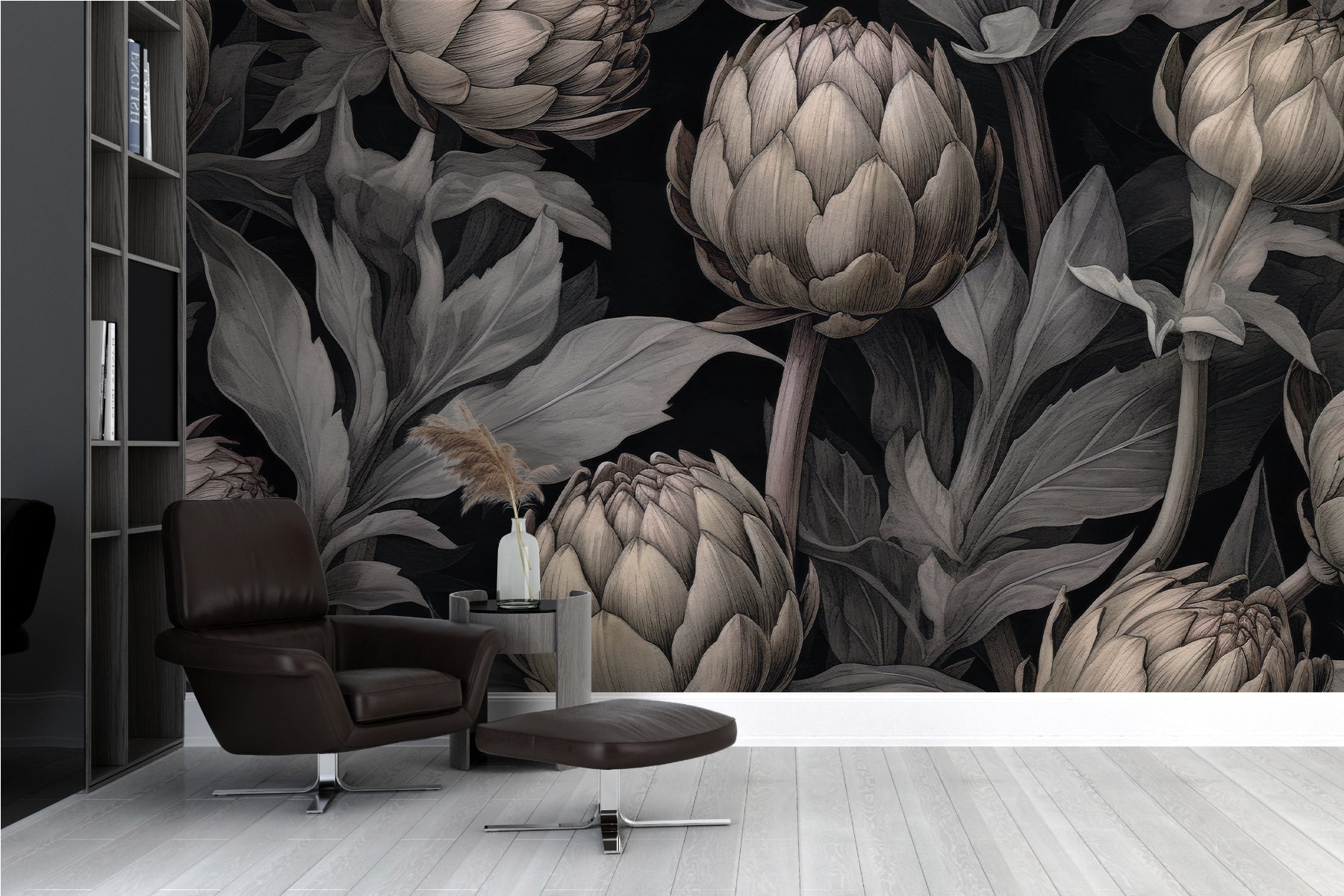 Alakítsa át terét ezzel a lenyűgöző falfestménnyel, amelyen articsókák és levelek táncolnak elegáns fekete háttér előtt. Olyan, mintha egy stílusos kerti fal lenne, amely azonnal feldobja bármelyik helyiséget. Képzelje el: átjönnek a barátok, és hirtelen ez a fal ellopja a show-t – mindenki a gyönyörűen részletezett articsókákat bámulja, szinte mintha éreznék a friss termés földillatát. Kifinomult, mégis hangulatos, tökéletes egy nappaliba vagy akár egy konyhába. Ki gondolta volna, hogy az articsóka ilyen bájos hangulatot tud kelteni? Vigyen egy csipetnyi természetet otthonába a karbantartás fáradalmai nélkül!
