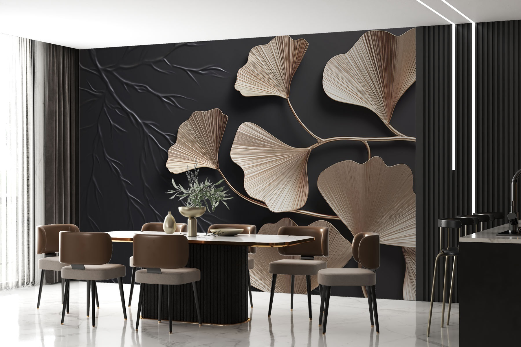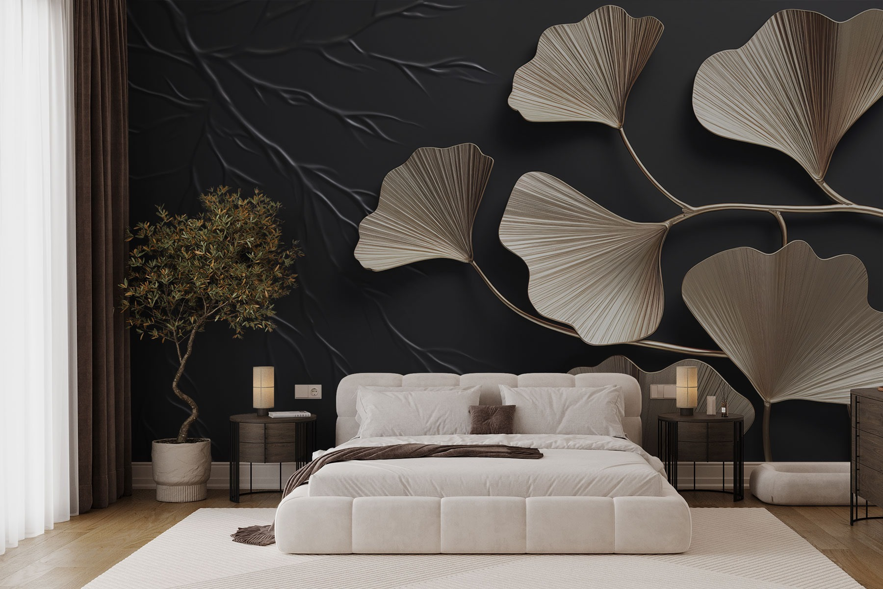 Alakítsa át terét ezzel a lenyűgöző falfestménnyel, amely művészi ginkgo leveleket ábrázol egy egyedi háttéren. Képzelje el, hogy a lombok lágy, természetes tónusai ölelik át a falait. Olyan természetességgel ruházza fel, hogy a vendégek csodálni fogják a stílusát. A kecses levelek mintha táncolnának, nyugtató hangulatot teremtve, amely tökéletes egy hangulatos olvasósarokba vagy egy élénk étkezőbe. Ráadásul könnyen alkalmazható – tökéletes azok számára, akik szeretik a gyors átalakítást rendetlenség nélkül. Ez a falfestmény talán néhány mély lélegzetvételre és álmodozásra inspirál. Ki ne szeretné ezt?