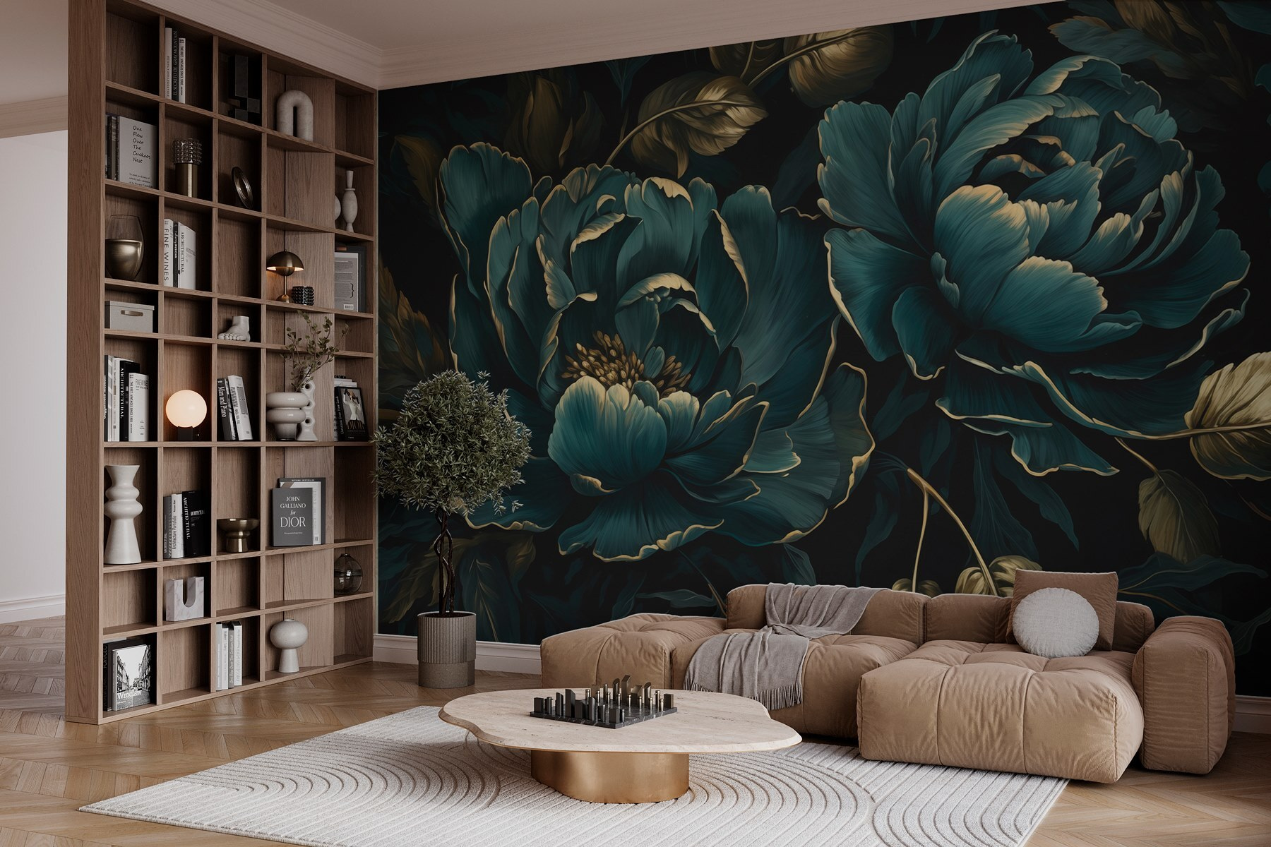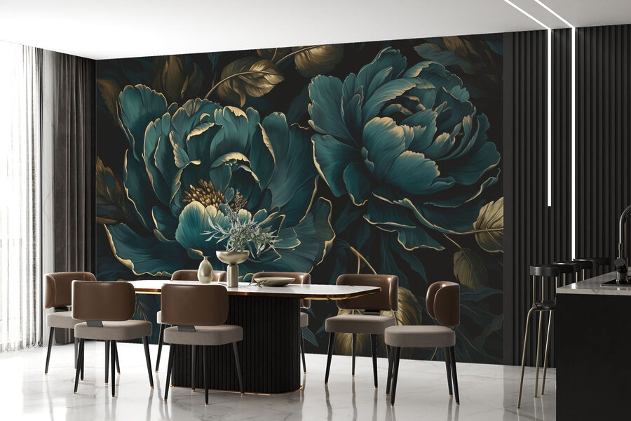 Változtasson bármelyik szobát vibráló oázissá ezzel a lenyűgöző falfestménnyel, amely gyönyörű, mély árnyalatokban pompázó virágokat ábrázol. Képzelje el, hogy belép a helyiségébe, ahol túlméretezett bazsarózsák és buja lombok veszik körül, és egy kis kertet varázsolnak a belső térbe. Olyan, mintha minden egyes nap egy személyes botanikai menekülésben lenne része! A színek merészek és gazdagok, a melegség és az öröm érzését keltik. Tökéletes arra a falra, amely egy kis szeretetre vágyik, vagy csak egy kávé melletti beszélgetésre egy baráttal. Ki ne mosolyogna egy ilyen drámai virágokkal díszített szobában?