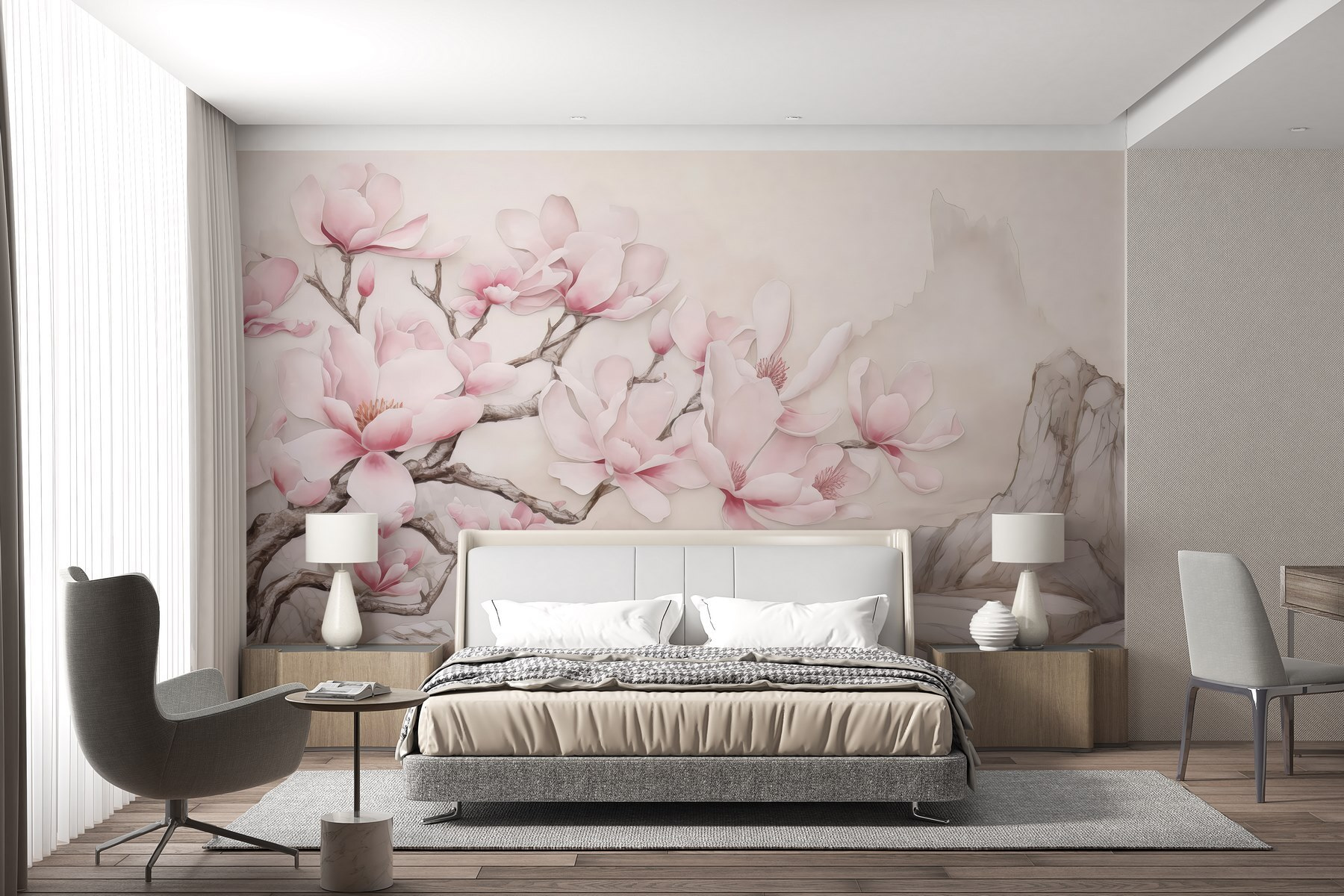Alakítsa át terét a természet bájával, ezzel a gyönyörű falfestménnyel, amely egy fát ábrázol, amelyet boldogító rózsaszín virágok díszítenek. Képzelje el, hogy minden nap úgy ébred, mintha egy nyugodt kertben sétálna. A lágy színek nyugtató hangulatot teremtenek, tökéletes hangulatos sarkokba vagy statement falakra. Olyan, mint egy kis friss levegő a szobádba – nem szükséges zöld hüvelykujj! Tökéletes az álmodozáshoz, a hangulatos könyves zugokhoz, vagy egyszerűen csak a nyugodt hangulat élvezéséhez. A falai hálásak lesznek érte! Képzelje el, ahogy kávét kortyolgatva elmerül a szépségben – milyen szépen indul a nap!