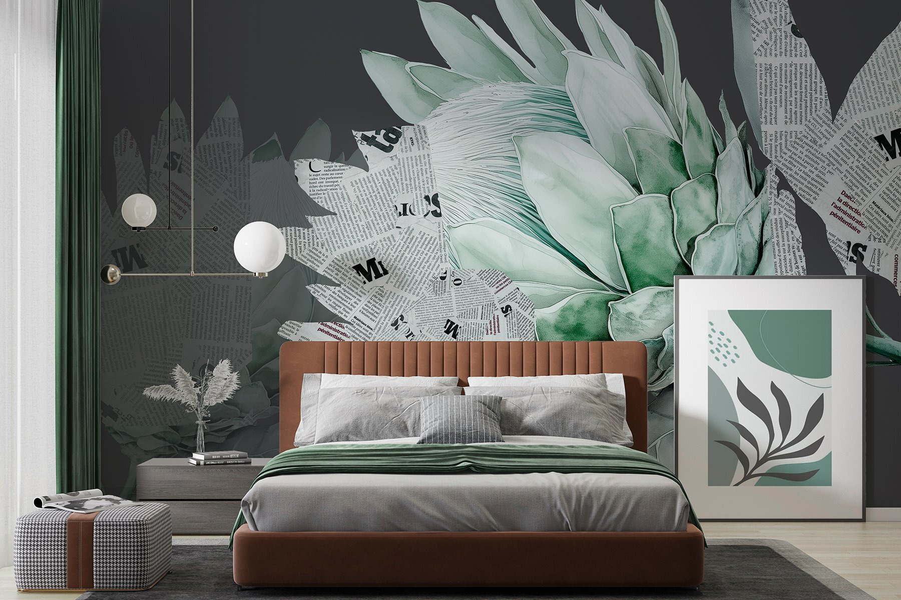 Változtasson át bármilyen unalmas falat élénk beszélgetésindítóvá ezzel az egyedi falfestménnyel, amelyen egy articsóka látható, játékos újságcikkekkel összefonódva. Mintha az articsóka új hobbit próbált volna ki – az olvasást! Ez a dizájn mókás színt visz a nappaliba, a konyhába, vagy akár abba a furcsa kis zugba, amelyet eddig figyelmen kívül hagytál. Képzeld el, ahogy a barátaid feszülten próbálják kitalálni, hogy mit írnak a cikkek, miközben a falad kerül a középpontba. Minden egyes levél lágy zöld tónusa nyugalomra hív. A természet és a kreativitás keveréke – igazi szemet gyönyörködtető! Tökéletes azok számára, akik egyszerre értékelik a stílust és a jókedvet.