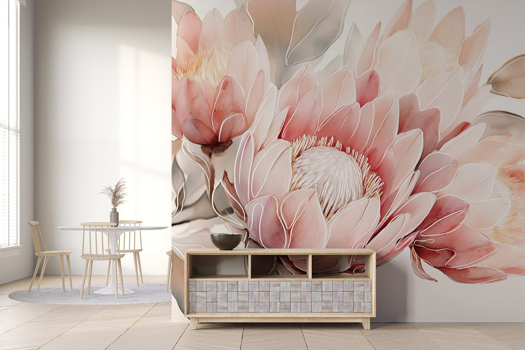 Bemutatjuk a “Finom szirmok lágy árnyalatokban” falfestményt, amely egy finom kertet varázsol a térbe. Képzelje el, hogy belép egy szobába, és azonnal érzi azt a lágy, nyugtató hangulatot, mint egy szelíd tavaszi reggel. A pasztellszínek együtt táncolnak, a melegség és a nyugalom érzését keltve. Képzelje el, ahogy teát szürcsölgetve nekidől a gyönyörű virágokkal díszített falnak – olyan, mintha egy virágokból álló felhőt ölelne magához. Ez a falfestmény tökéletes egy hangulatos olvasósarokba vagy egy nyugodt hálószobába, és könnyed érintése bármelyik hétköznapi falat álomszerű meneküléssé varázsolhatja. Csak ne hibáztasd, ha azon kapod magad, hogy álmodozol.