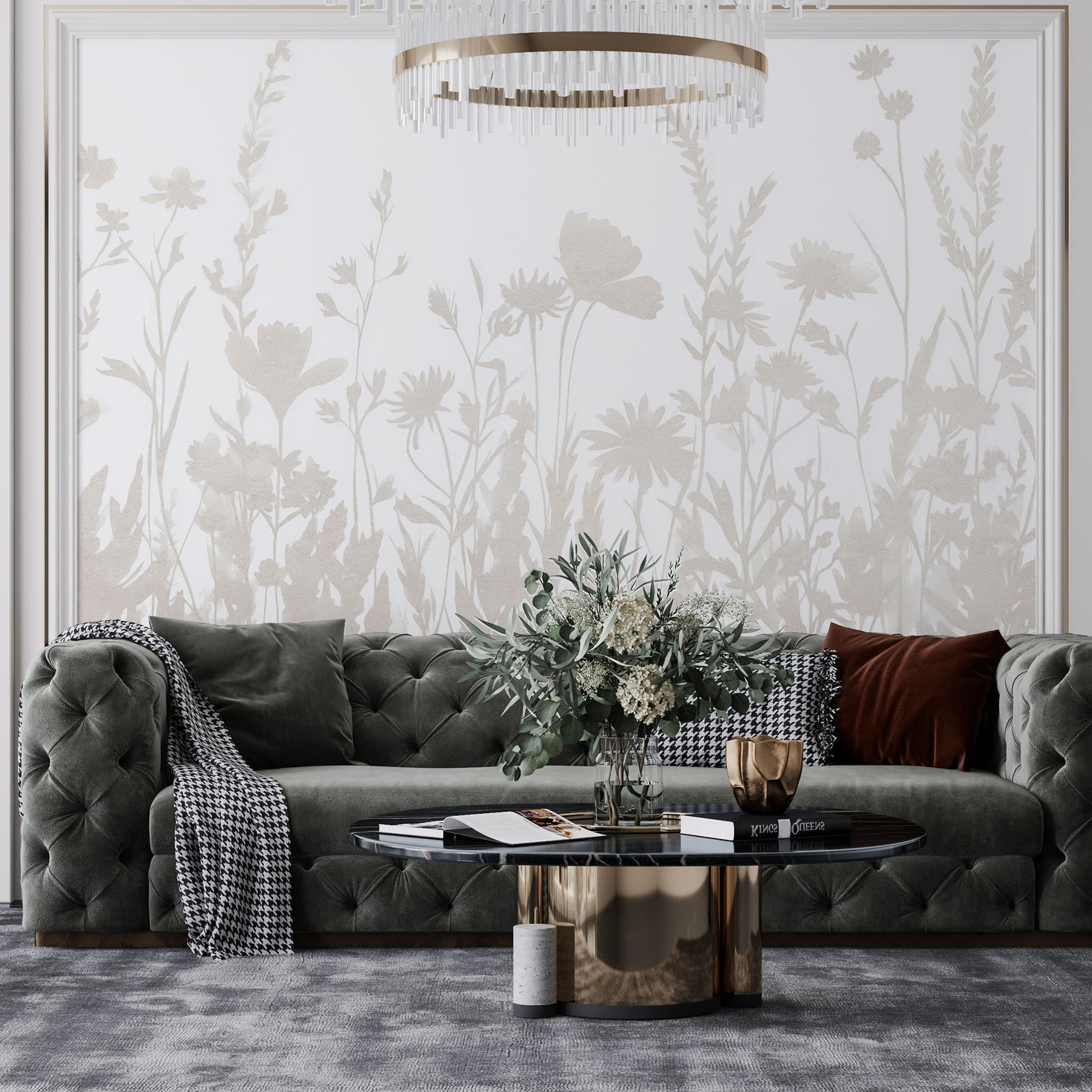 Alakítsa át terét ezzel a varázslatos falfestménnyel, amely finom virágokat ábrázol lágy, fehér háttér előtt. Képzelje el, hogy minden reggel egy nyugodt kertben ébred, ahol minden virág a saját történetét meséli el. A falfestmény szelíd dizájnja könnyedén illeszkedik a különböző dekorációs stílusokhoz, és bármely helyiségnek légies, hívogató hangulatot kölcsönöz. Tökéletes egy hangulatos olvasósarokba vagy egy hálószoba nyugodt hátterébe, olyan, mint egy kis friss levegő, anélkül, hogy zöld hüvelykujjra lenne szükség. Párosítsa meleg világítással az álomszerű hangulatért – ki ne szeretne egy pillanatra elmerülni egy virágos álmodozásban?