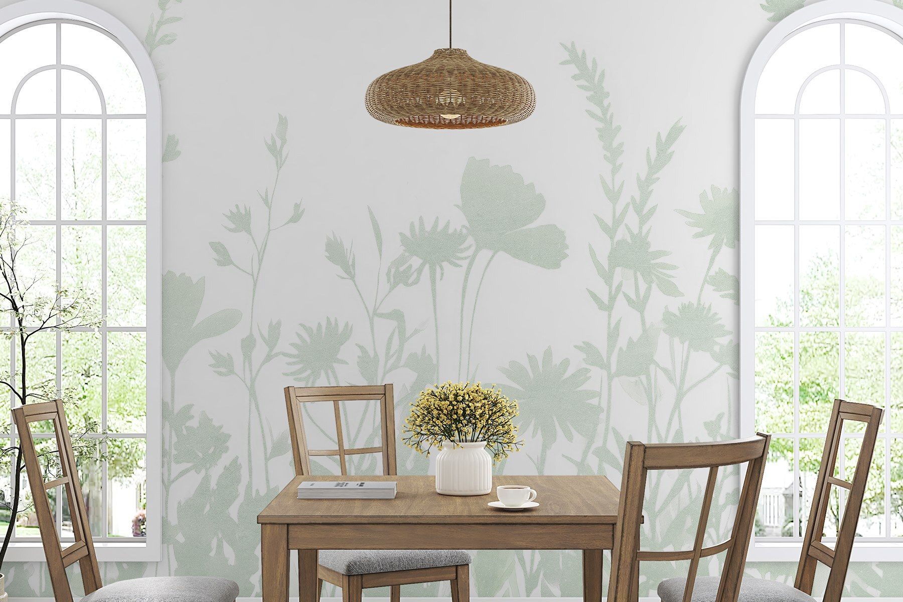 Alakítsa át terét a “Delicate Silhouettes of Blooming Flowers” falfestménnyel. Képzelje el, hogy egy olyan szobába lép be, amely olyan, mint egy nyugodt kert, ahol lágy zöldek lágyan csíráznak a ropogós fehér háttér előtt. Olyan, mintha a természet úgy döntött volna, hogy meghitt helyet foglal a beltérben. Ez a falfestmény eleganciát suttog anélkül, hogy a figyelemért kiáltana, tökéletes azokba a csendes sarkokba, ahol a napfény táncol és az álmok elidőznek. A vendégek talán megállnak, és megragadják őket a kedves részletek, Ön pedig azt fogja tapasztalni, hogy a hétköznapi pillanatokat valami különlegessé varázsolja. Tökéletes azok számára, akik imádják a friss hangulatot, és ez egy finom módja annak, hogy életet leheljen bármelyik szobába.