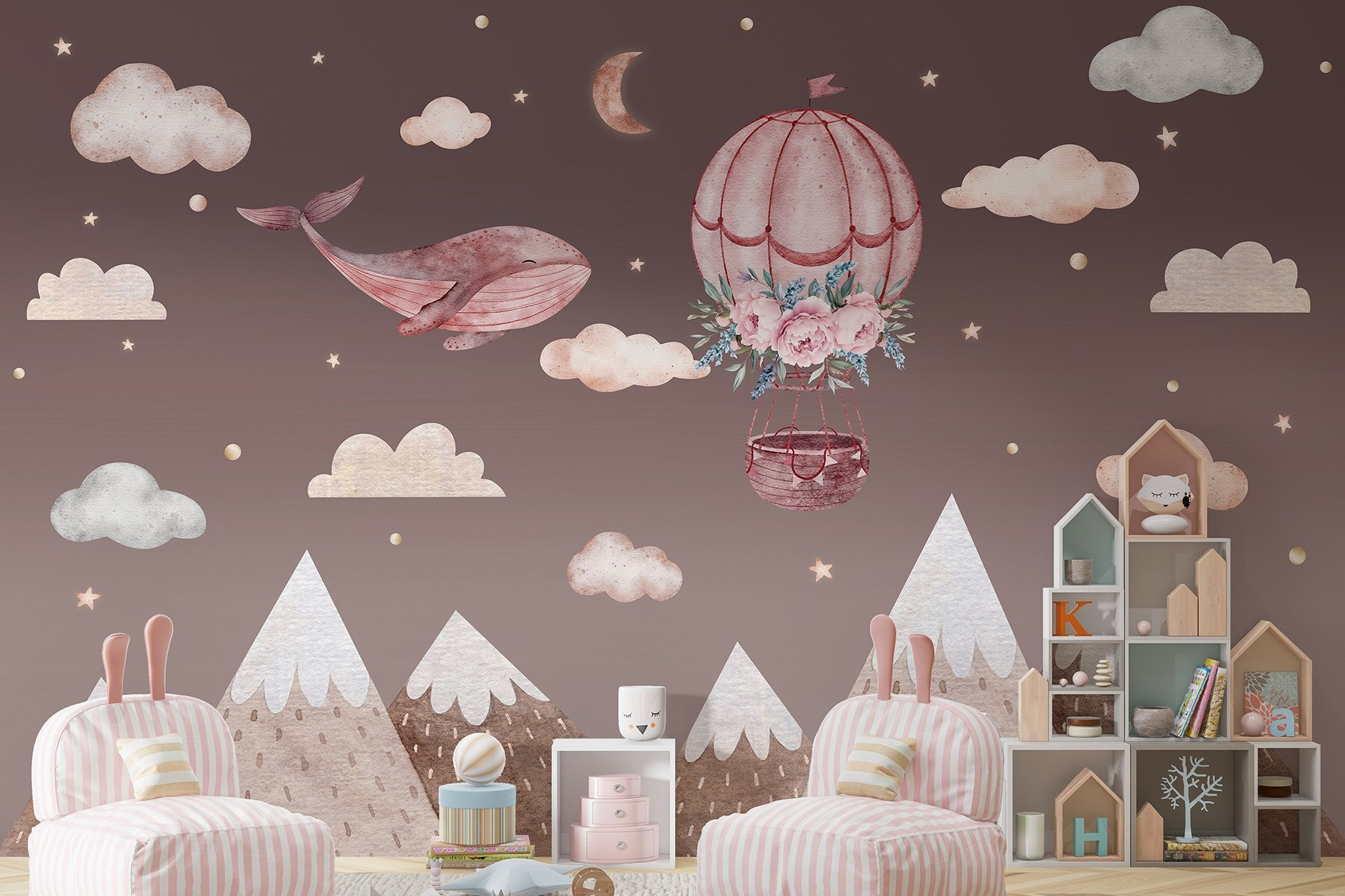 Alakítson át bármilyen szobát álomszerű meneküléssé ezzel a szeszélyes falfestménnyel, amelyen egy bájos bálna és egy hőlégballon lebeg a pasztellszínű égbolton. Képzelje el, ahogy kávét szürcsölgetve nézi ezt a játékos bálnát – komolyan, ki gondolta volna, hogy a vízi lények flörtölhetnek a felhőkkel? A nyugtató színek olyan hangulatot teremtenek, amely egyszerre nyugodt és inspiráló. Tökéletes gyerekszobába vagy egy hangulatos olvasósarokba, ez a falfestmény álmodozásra hív és képzeletre ösztönöz. Képzelje el, ahogy a kicsik felnéznek, és ellebegnek a saját kalandjaikba, vagy ahogy a felnőttek visszaemlékeznek a csodákkal teli gondtalan napokra. Olyan ez, mint egy mini kirándulás a falon, amely arra vár, hogy minden egyes nap örömet okozzon.