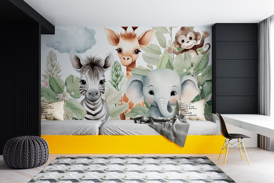 Bármilyen teret alakítson át egy élénk dzsungelbe való visszavonulássá ezzel a bájos falfestménnyel, amelyen játékos állatok leselkednek át a buja leveleken. Képzeld el az örömöt a gyerekek arcán, amikor meglátják a barátságos zebrát, a kíváncsi zsiráfot és a pimasz majmot – tökéletes gyerekszobákba vagy játszószobákba. Ez a falfestmény melegséget és szeszélyt sugároz, és behozza a szabadba a természetet. Olyan, mintha a természet saját kis állatkái tombolnának a falon! Könnyen felhelyezhető, és elég fényes ahhoz, hogy beszélgetéseket kezdeményezzen, így azonnal hangulatjavító. Ki ne szeretne erre a vidám jelenetre ébredni? Gondoljon csak az itt kibontakozásra váró történetekre.