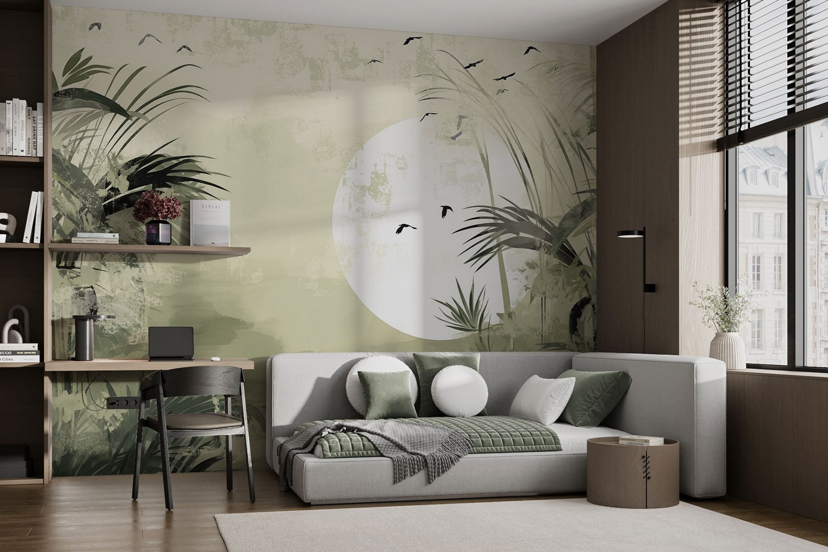 Ezzel a trópusi erdei falfestménnyel bármelyik szobát nyugodttá varázsolhatod – mintha a dzsungel egy darabját hoznád be a szobába, csak a bogarak nélkül. Képzelje el, ahogy a reggeli kávéját kortyolgatva a buja zöldellő növényzetet és az álomszép, túlméretezett holdat bámulja. Ez a falfestmény nem csak díszít; nyugalmat idéz, amely tökéletes a hosszú nap utáni kikapcsolódáshoz. A barátok besétálnak, és úgy érzik majd, mintha egy esőerdei menedékbe léptek volna. Ez az a fajta háttér, amely álmodozásra hív és beszélgetésekre késztet. Ki gondolta volna, hogy egy fal elrepíthet valakit a paradicsomba?