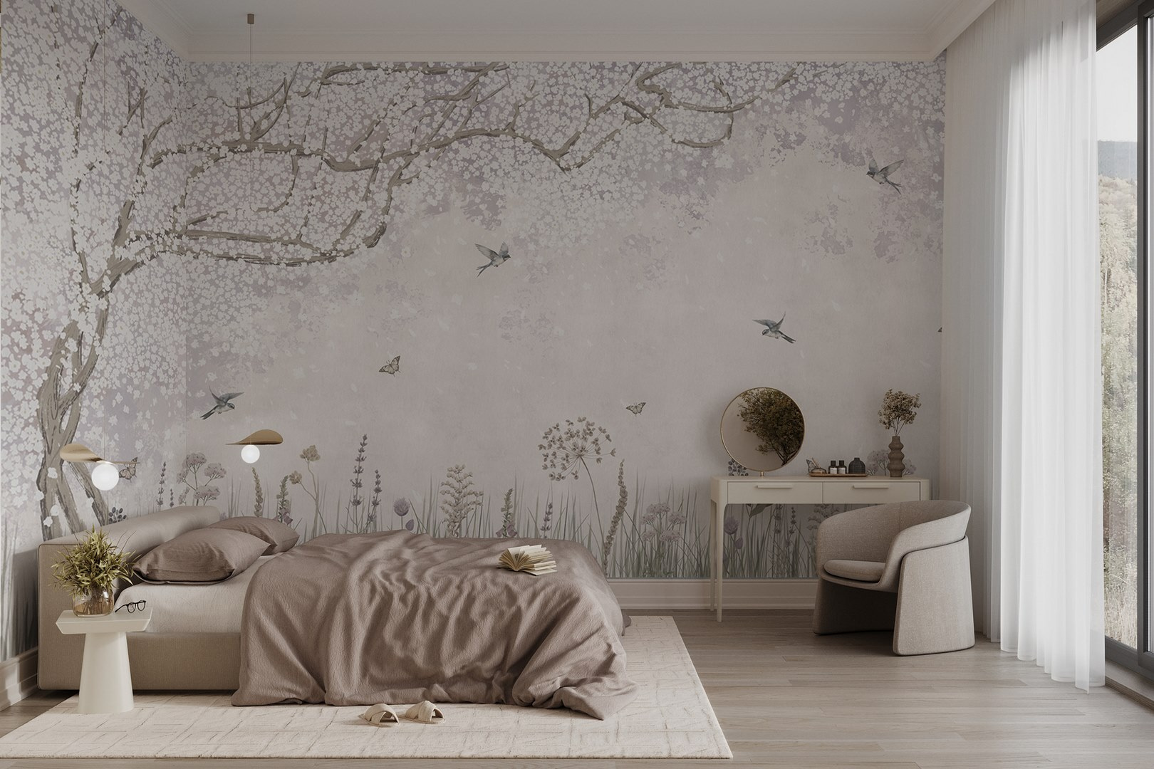 Alakítson át bármilyen teret ezzel a bájos falfestménnyel, amely egy nyugodt kertet ábrázol, tele virágzó virágokkal és repkedő pillangókkal. Képzelje el, hogy minden reggel a természet lágy színeire és szelíd bájára ébred a falán. Olyan, mintha egy békés rétet hozna be a házba, a pollenek nélkül! Ez a falfestmény tökéletes egy hangulatos zugba vagy egy hívogató nappaliba, meleg légkört teremt, örömöt és talán még azt a késztetést is kiváltja, hogy megálljon és megszagolja a rózsákat – persze csak képletesen. Minden egyes pillantás olyan, mintha egy mini menekülés lenne egy nyugodt kertbe, amikor az élet túlságosan hektikussá válik. Adjon hozzá egy kis szeszélyt, és nézze, ahogy a falak életre kelnek!