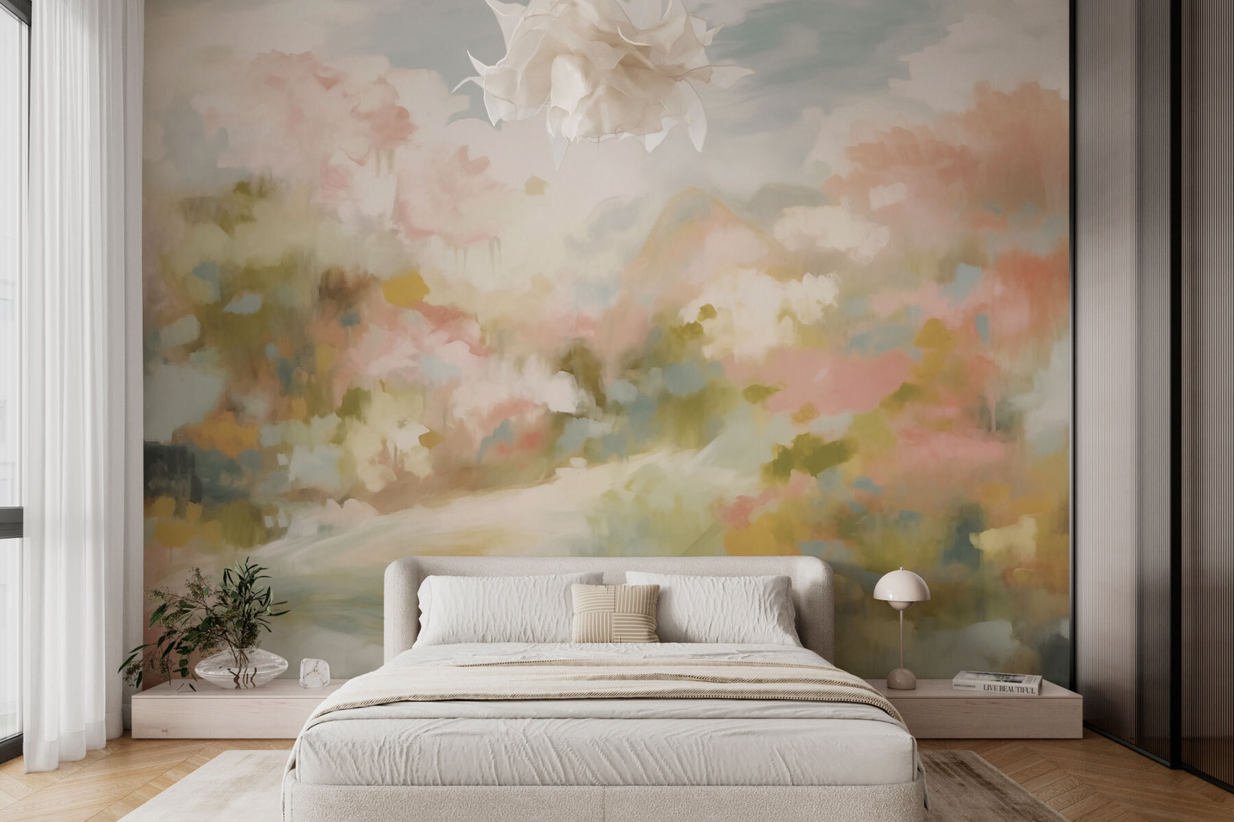 Képzelje el, hogy minden alkalommal, amikor belép egy szobába, egy nyugodt tájba lép. Ez a falfestmény a természet szépségét egyenesen a falakra hozza, és békés meneküléssé varázsolja a teret. Lágy pasztellszínek kavarognak egymásba, virágzó kerteket és távoli hegyeket idézve. Olyan, mintha a természet meleg ölelést adna otthonodnak! Tökéletes bármilyen térbe – legyen az egy hangulatos nappali vagy egy békés hálószoba – a falfestmény nyugtató színeket és bájt kölcsönöz. A barátok napfényes sétákról való ábrándozásba merülnek majd, és ki ne vágyna egy kis édességre a mindennapokban?