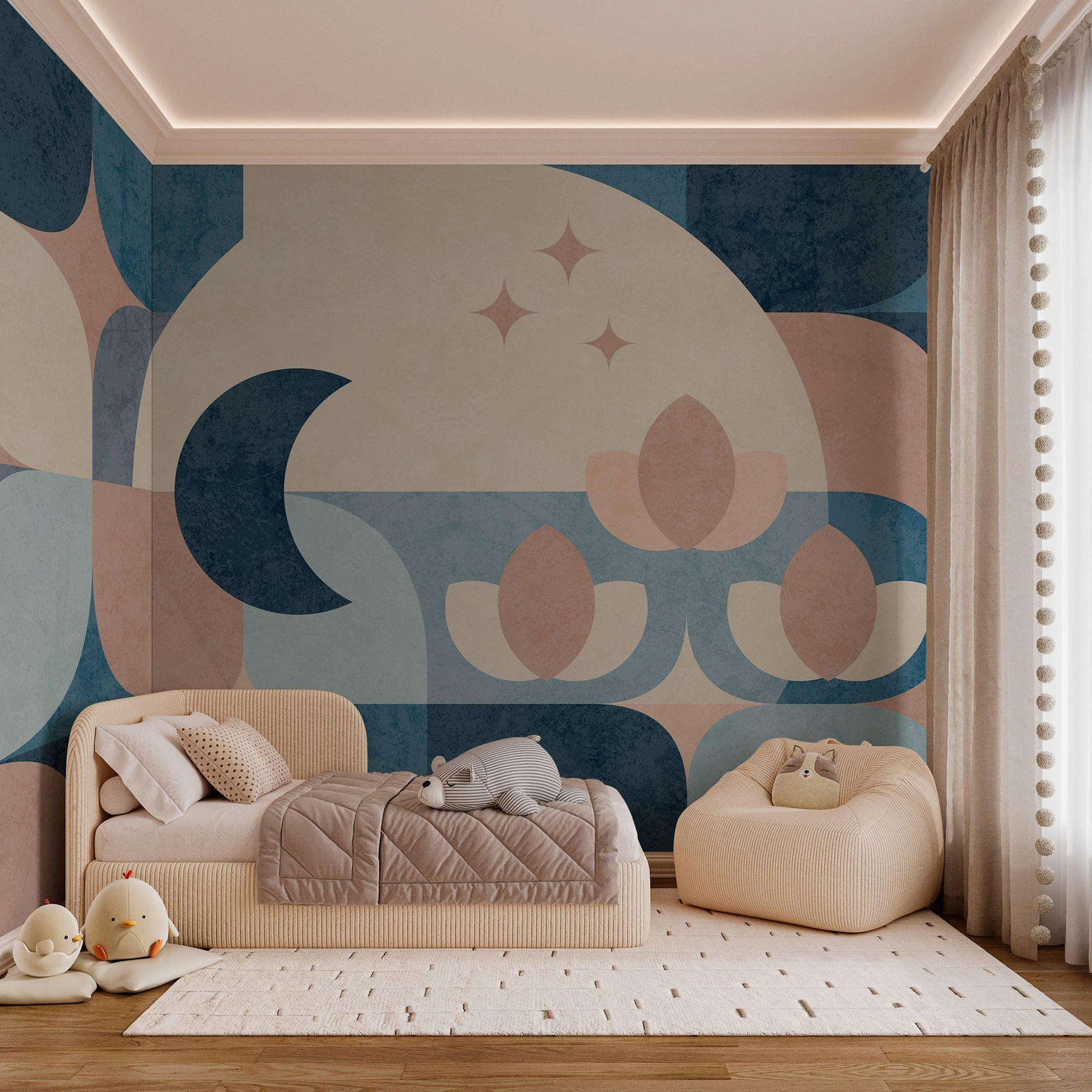 Bármelyik falat beszélgetésindítóvá varázsolhatod ezzel a lenyűgöző kék és rózsaszín geometrikus falfestménnyel. Olyan, mint egy meghitt ölelés a szobádba – merész, mégis megnyugtató, a felületén táncoló formákkal. Képzeld el, ahogy kávét szürcsölgetve elveszel a nyugodt hangulatában. Minden egyes ív és szög a szemet barangolásra hívja, ötleteket ébresztve a kreatív lelkek számára. Tökéletes egy nappaliba, otthoni irodába vagy akár egy játékos gyerekszobába, ez a dizájn melegséget sugároz, miközben kijelentést tesz. Adjon hozzá egy kis bájt, és nézze, ahogy a tér életre kel. Ez a falikép, amely olyan, mint egy álom.
