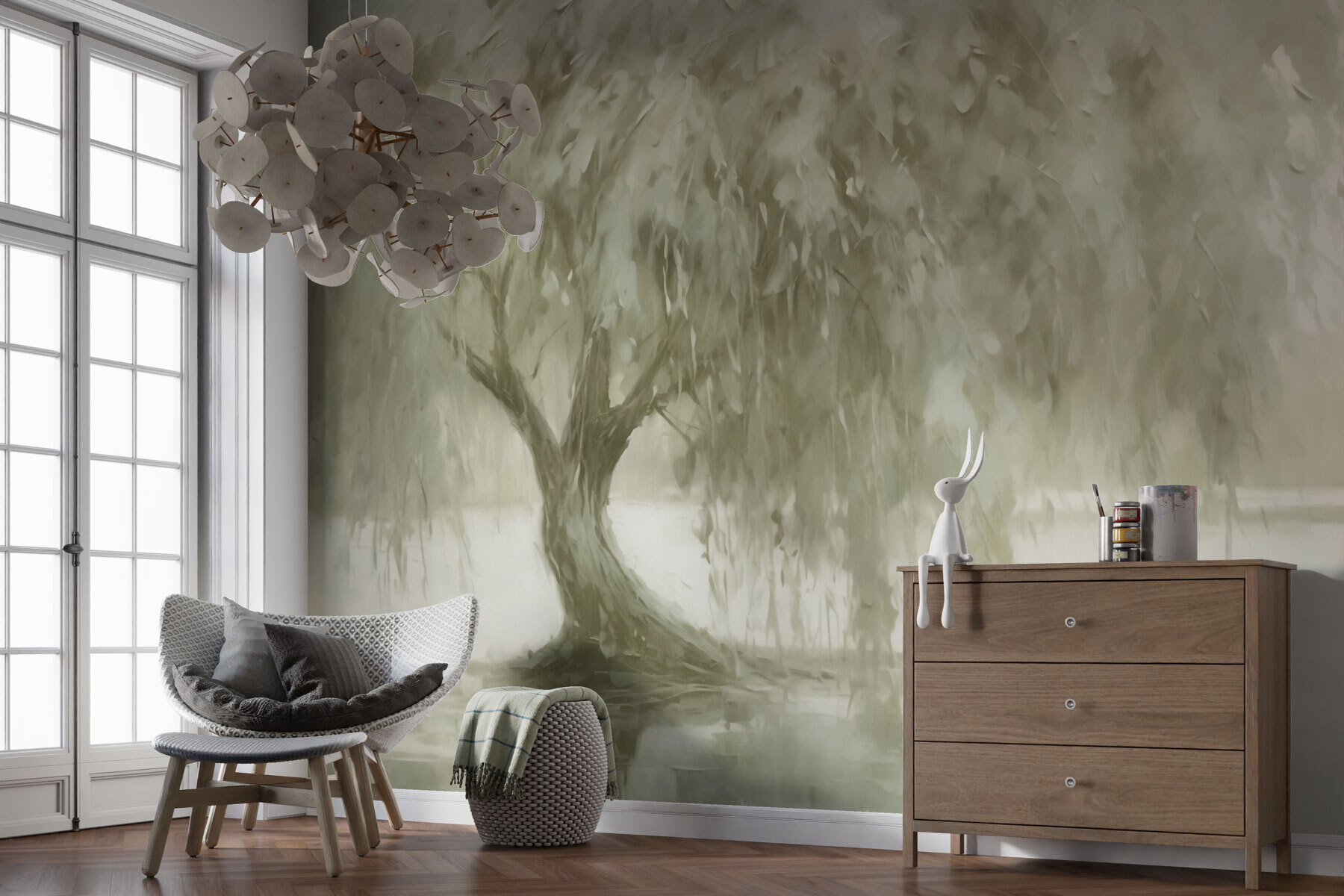 Alakítson át bármilyen helyiséget ezzel a varázslatos falfestménnyel, a “Fa a vízben” cíművel. Csak képzelje el – a derűs, lágy árnyalatok gyengéd ölelésbe burkolják a teret. Olyan, mintha a természet egy szeletét hoznád be a házba anélkül, hogy aggódnod kellene az öntözés miatt. Úgy tűnik, a fa kecsesen ringatózik, tükörképeket vetítve, amelyek táncot járnak a falakon, és tökéletesek az álmodozáshoz vagy a baráti beszélgetésekhez. Képzelje el, ahogy egy könyvvel összegömbölyödve, gondolataiba merülve elmerül a nyugodt hangulatban. Ez a falfestmény nem csak díszít – nyugalmat sugároz, és minden pillanatot egy kicsit különlegesebbé tesz. Igazi gyöngyszem a természet szerelmeseinek!