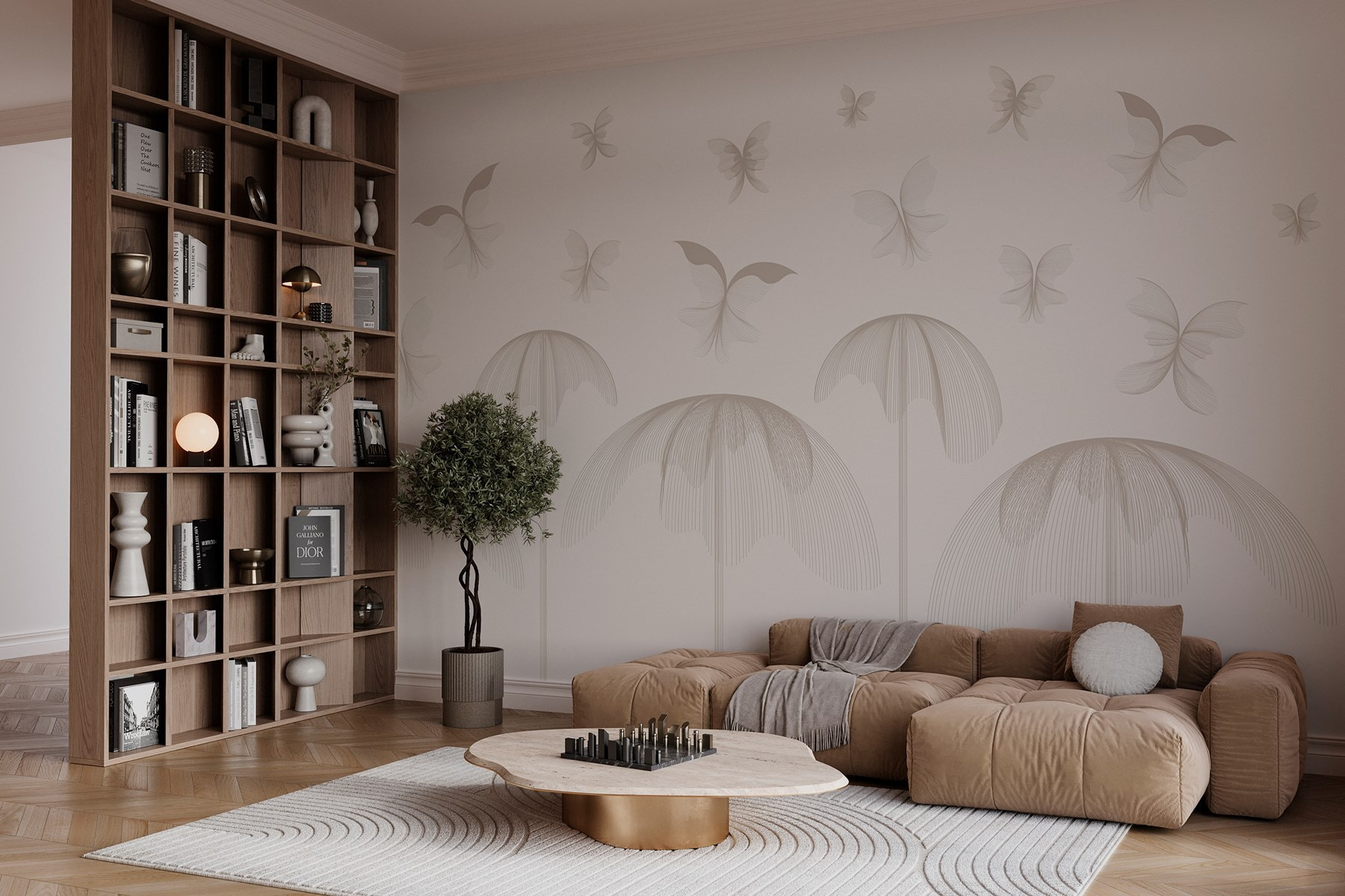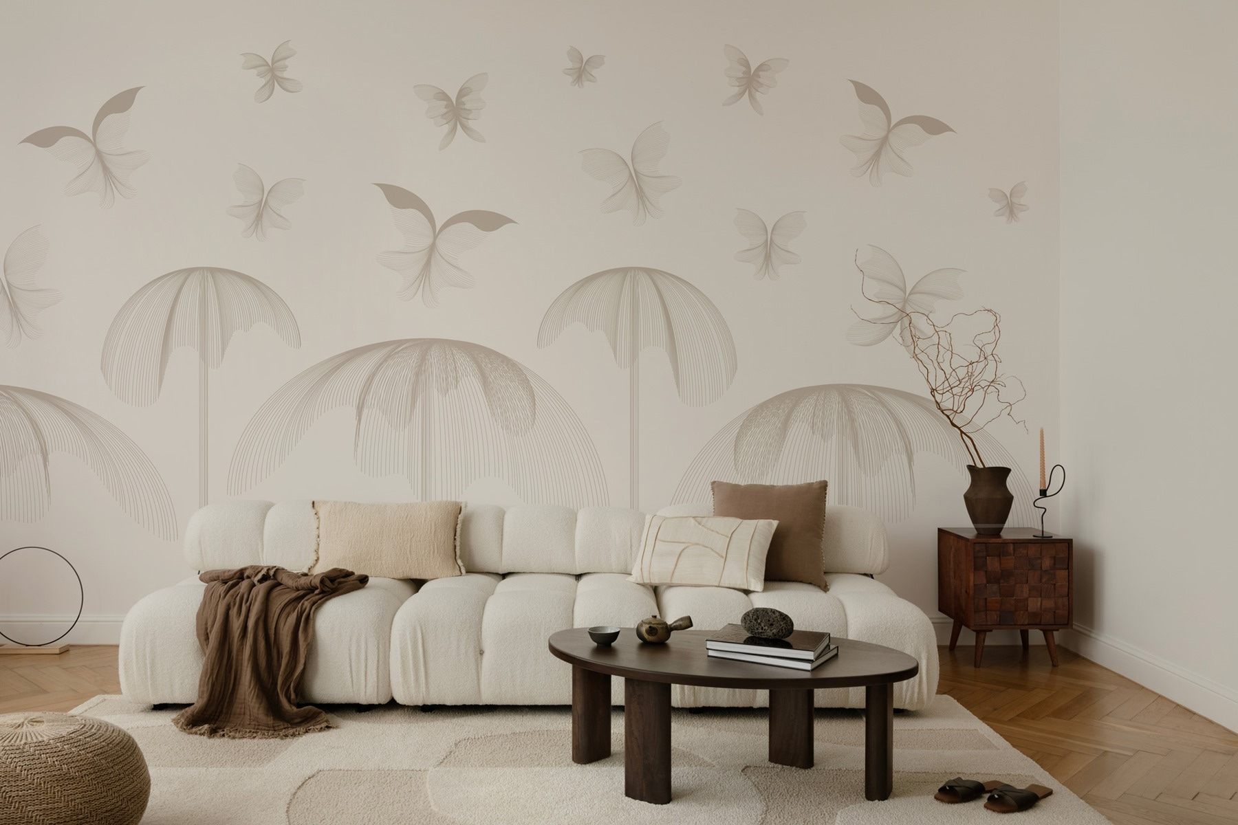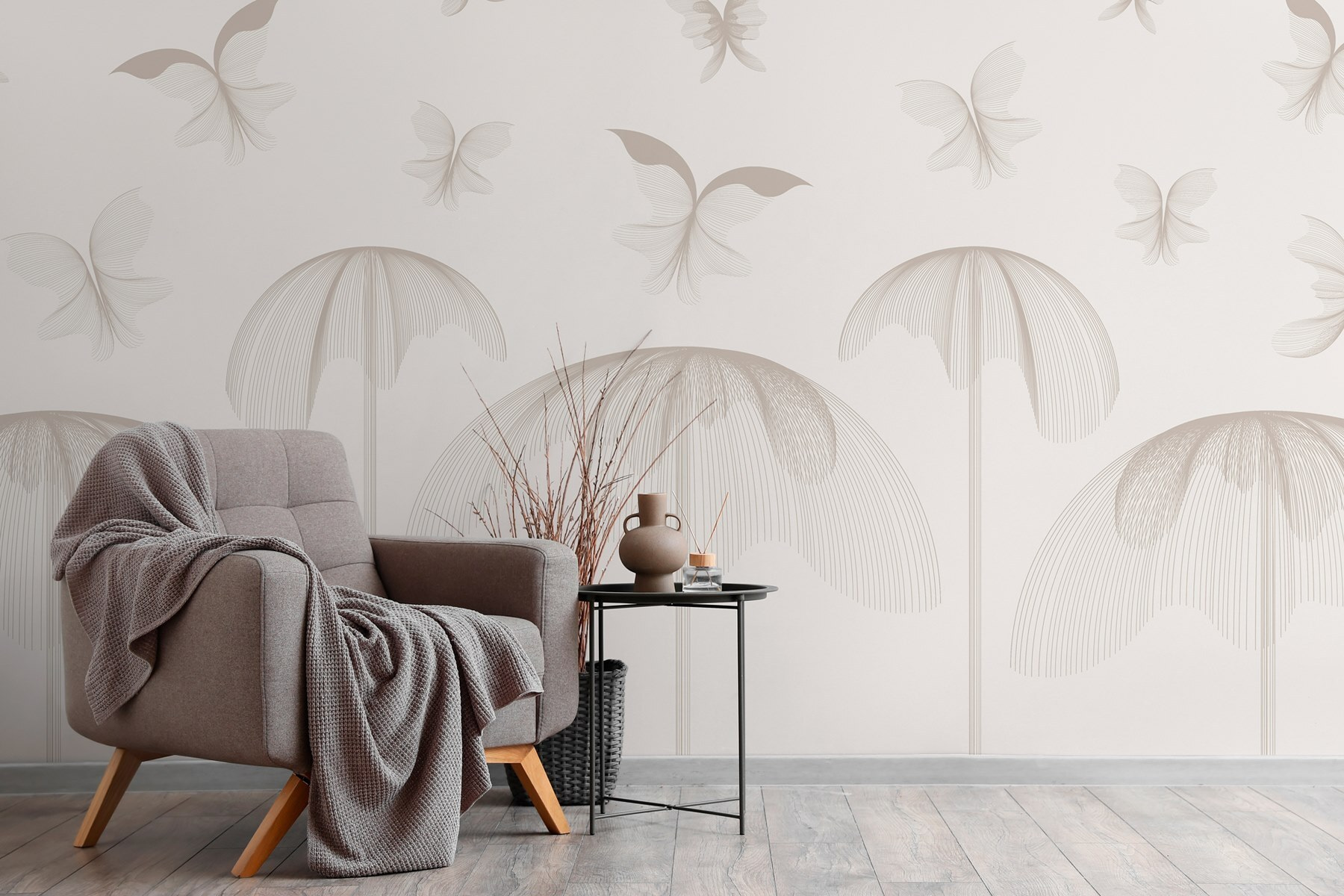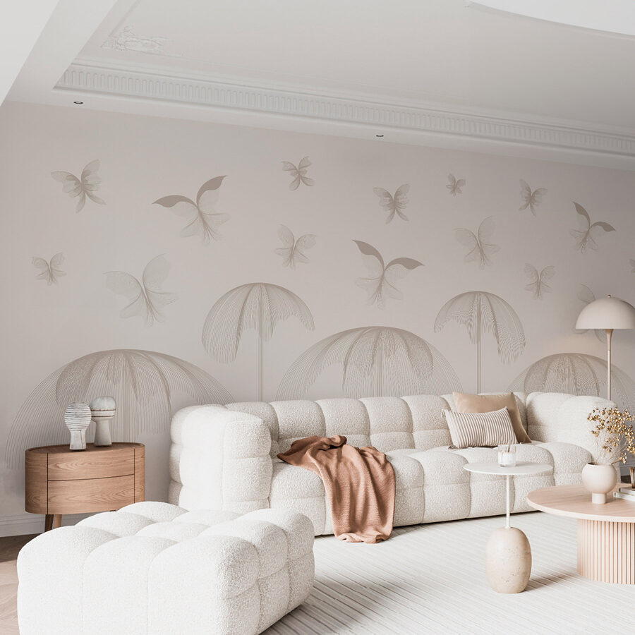 Hozzon egy kis friss levegőt a terébe ezzel a varázslatos falfestménnyel, amelyen finom virágok között repkedő pillangók láthatók. Képzelje el, hogy minden alkalommal, amikor belép a szobába, egy nyugodt kertbe lép. A lágyan kavargó minták és a tompa árnyalatok nyugodt hátteret teremtenek, amely békés hangulatot áraszt. Olyan, mintha a falak édes semmiségeket suttognának, és pihenésre ösztönöznének. Párosítsd egy kényelmes székkel és egy jó könyvvel, és máris megvan a tökéletes kis zug. Komolyan, ki ne szeretne egy pillangóparadicsomban teázni? Alakítsa át otthonát egy szeszélyes meneküléssé, amely minden nap örömet okoz.