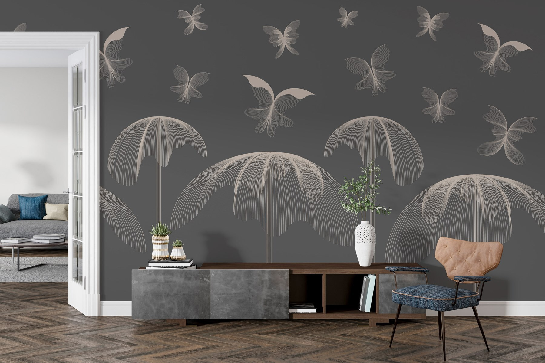 Képzelje el, hogy belép egy olyan szobába, amely olyan, mint egy pillangókert – anélkül, hogy bogarak kerülnének a hajába. Ez a falfestmény a lágy háttéren repkedő, karcsú pillangókkal egy kis szeszélyt és kecsességet kölcsönöz bármely helyiségnek. Képzeljen el egy hangulatos olvasósarkot, ahol ezek a finom teremtmények megmozgatják a képzeletet, és minden délutáni teázást tavaszi piknikhez hasonlóvá tesznek. Minden a hangulatról szól, nem igaz? Az áramló dizájn eleganciát sugároz, miközben meghívja a vendégeket egy kis álmodozásra. A falaid hálásak lesznek ezért a bájos frissítésért, és a mindennapi pillanatokat valami különlegessé varázsolják.