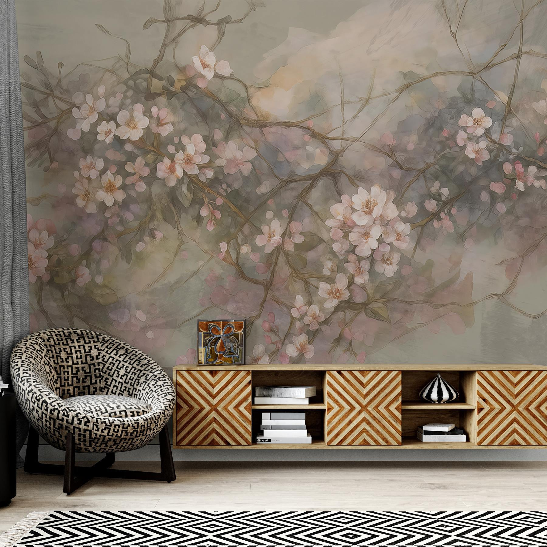 Alakítsa át terét egy lenyűgöző falfestménnyel, amely a virágok szépségét egyenesen az otthonába hozza. Képzelje el, hogy egy olyan szobába lép be, amely olyan, mint egy szelíd tavaszi nap, finom virágokkal díszített ágakkal. Ez a falfestmény nem csak művészet; ez egy hangulat, egy beszélgetésindító. Tökéletes bármilyen falra, amelyre ráférne egy kis szeretet, hiszen ez a falfestmény hívogató légkört teremt.