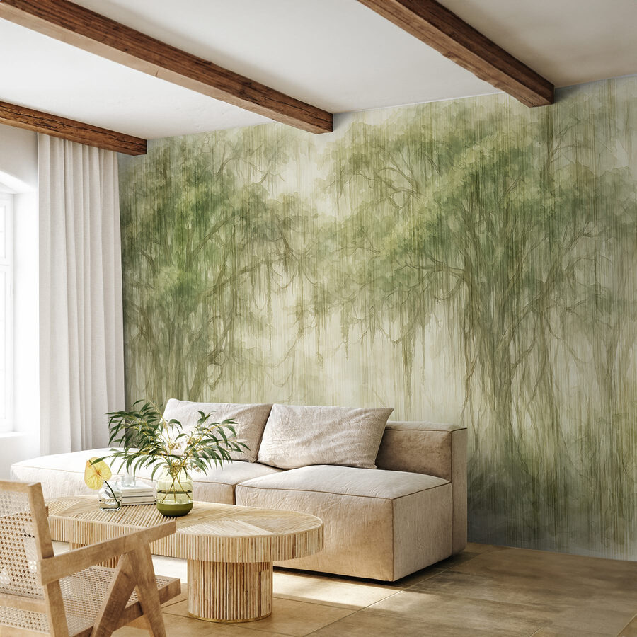 Merítse el terét a nyugalomba ezzel a varázslatos, ködös erdőt ábrázoló falfestménnyel. Olyan, mintha egy álomba lépnél, ahol a fák titkokat suttognak, és a levegő sűrű, titokzatos. Képzelje el, ahogy a reggeli kávéját szürcsölgetve, a zöld és barna lágy árnyalatai között, ahogy a napfény a ködös ágakon át bepillant. Ez a falfestmény a természet nyugalmát árasztja, és még a legzsúfoltabb napokat is egy kicsit lassabbnak érzi. Tökéletes egy hangulatos nappaliba vagy egy nyugodt hálószobába, álmodozásra invitál, és tökéletesen zavartalan marad. Ki ne vágyna egy nyugodt kikapcsolódásra otthonában?