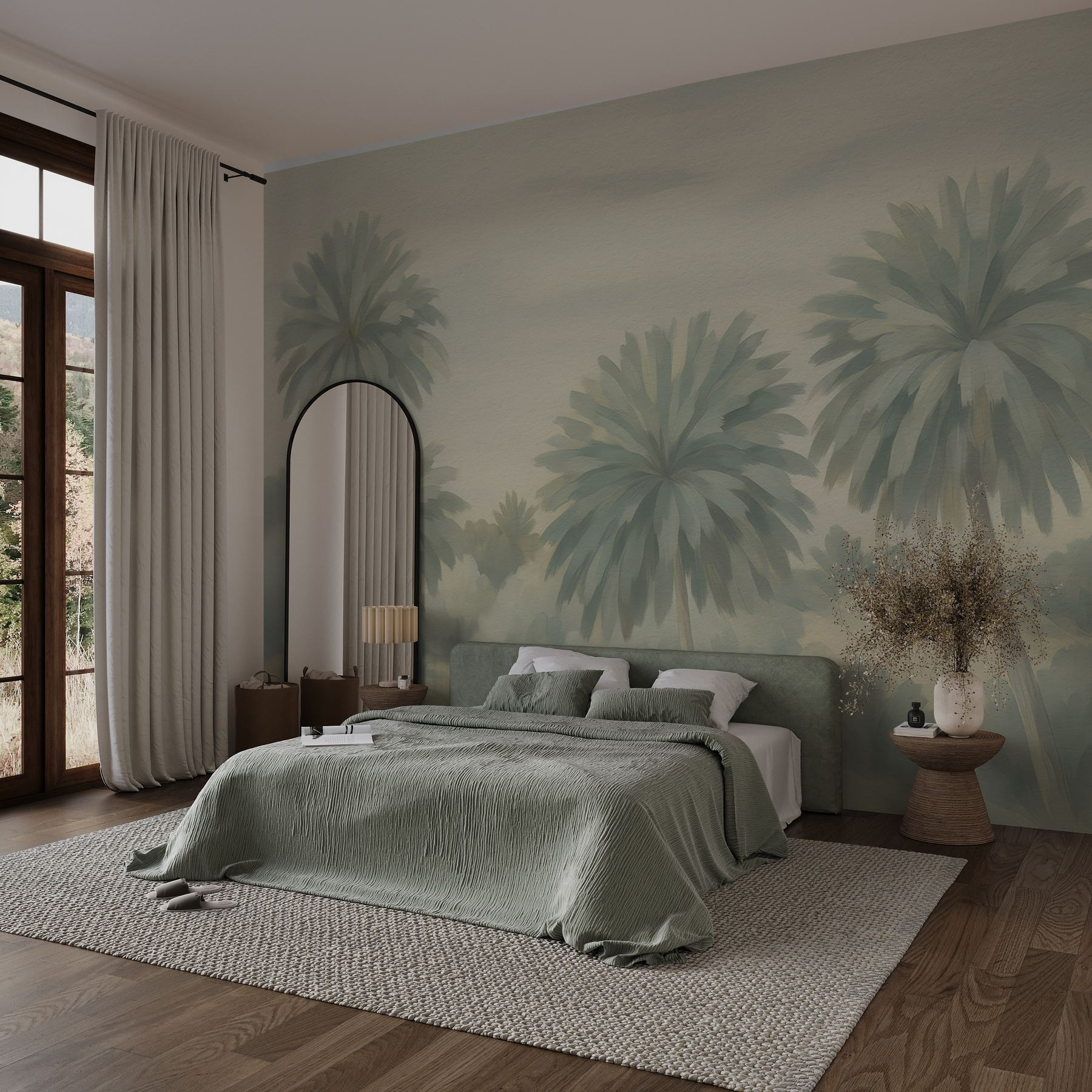 Alakítson át bármilyen helyiséget trópusi oázissá ezzel a lenyűgöző pálmafa falfestménnyel. Olyan, mintha a paradicsom egy szeletét hozná be a házba, a leégés veszélye nélkül. Képzelje el: szürcsölje a reggeli kávéját, miközben ezeket a lágy szellőben ringatózó, szelíd óriásokat bámulja. A tompa tónusok nyugodt hátteret teremtenek, amely tökéletes a kikapcsolódáshoz. Ideális nappaliba, hálószobába vagy akár hangulatos olvasósarokba is, a természet érintését adja a valódi növények fenntartása nélkül. Ez a falfestmény homokos tengerpartokról és meleg szellőkről való ábrándozásra hív. Ki ne szeretné ezt?