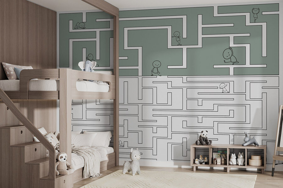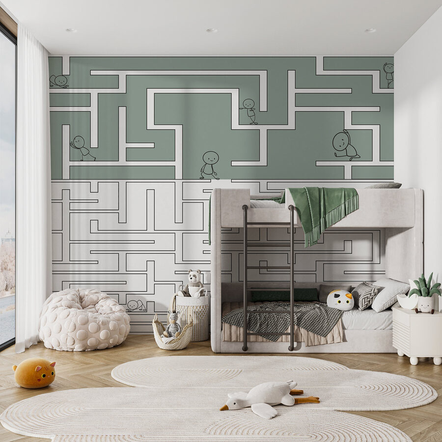 Alakítsa át a gyermek terét játékos kalanddá ezzel a szeszélyes falfestménnyel, amely egy labirintusjátékot és vidám rajzfilmfigurákat ábrázol. Képzelje el, ahogy a kicsik lelkesen végigsimítják ujjaikkal az ösvényeket, miközben úgy tesznek, mintha mindenféle vicces szökésen keresztül vezetnék őket. A lágy színpaletta nyugodt marad, míg a dinamikus labirintus kialakítása kíváncsiságot ébreszt. Ez nem csak dekoráció; ez a képzeletbeli játék és a mesélés háttere. Tökéletes hálószobákba vagy játszószobákba, ez a falfestmény nevetésre, kreativitásra és egy kis barátságos versenyre hív. Nézd, ahogy a gyerekek elvesznek a mókában!