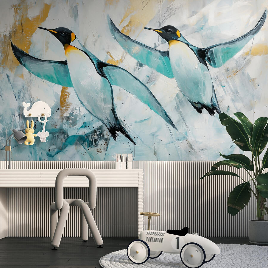 Merülj el a repülő pingvinek szeszélyes világába ezzel a lenyűgöző falfestménnyel. Olyan, mintha játékos menekülést biztosítana a falaknak a valóságból. Képzeld el ezeket a bájos kis fickókat, amint a vibráló égbolton szárnyalnak, széttárt szárnyakkal, és csak egy színfolt, amely melegséget visz bármelyik szobába. Tökéletes választás, ha egy kis vidámságot szeretnél vinni egy gyerekszobába, vagy akár egy hangulatos lakótérben is egyedivé varázsolhatod. Képzelje el, ahogy kávéját kortyolgatja, miközben vendégei megcsodálják a művészetet – mindenkinek szüksége van egy beszélgetésindítóra, nem igaz? Ez a falfestmény nem csak dekoráció; hangulatjavító és emlékeztető, hogy az élet arról szól, hogy élvezzük az apró dolgokat, mint például az álmokat kergető pingvinek!
